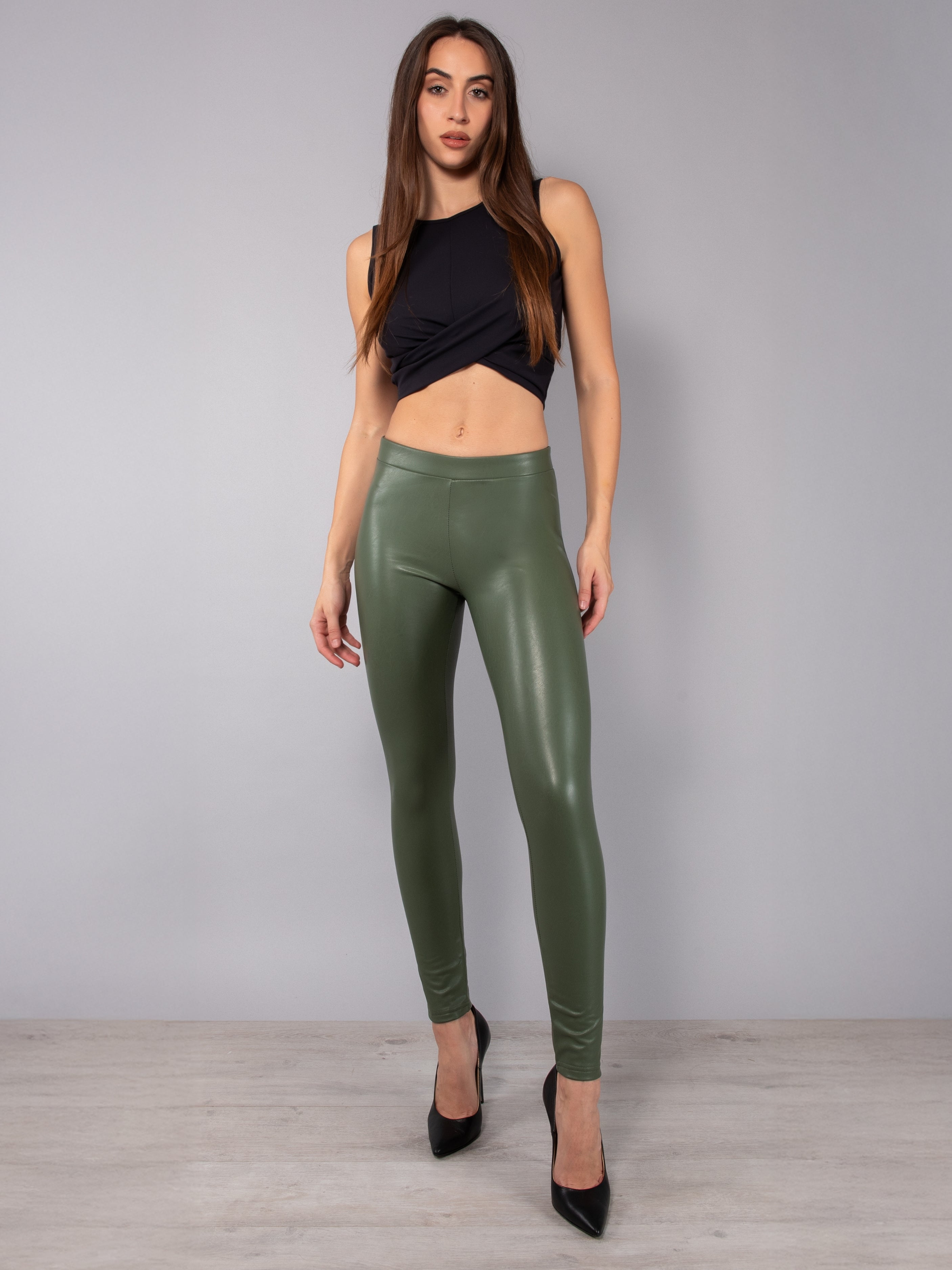 Leggings ecopelle con interno in micropile - VERDE - 4 - VERDE - LG11