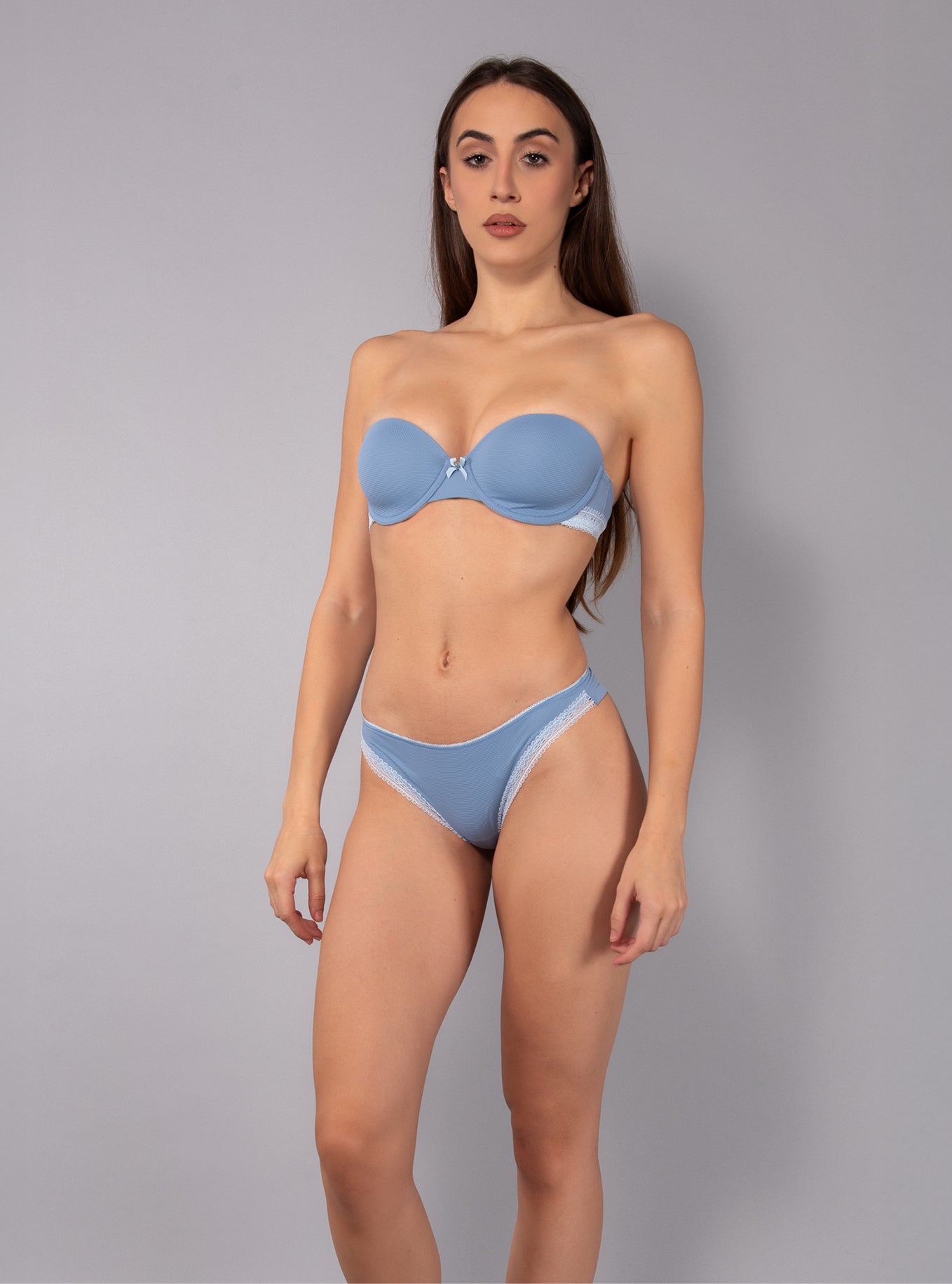 Reggiseno a fascia imbottito con ferretto in tessuto jacquard - DENIM - 1880