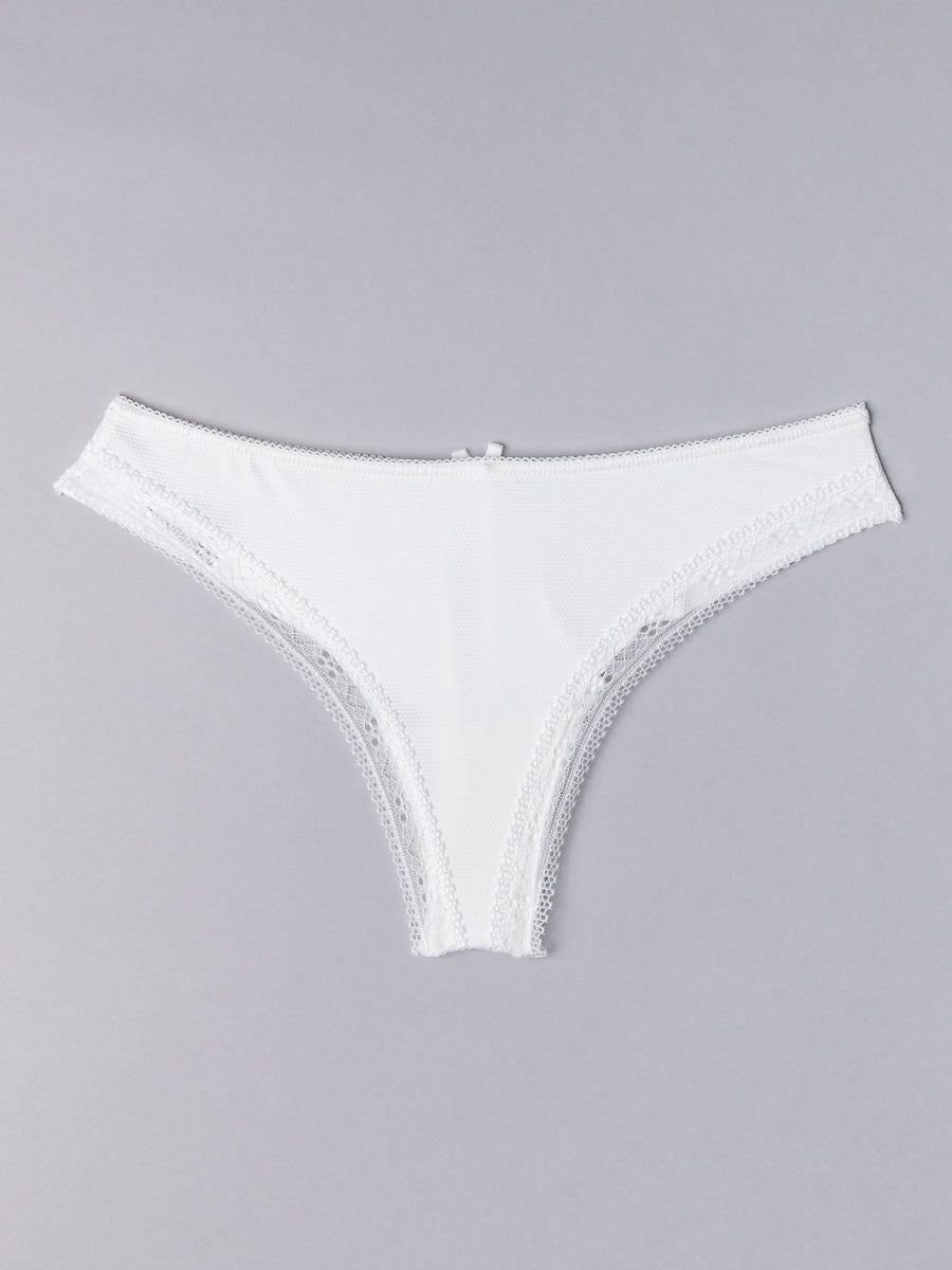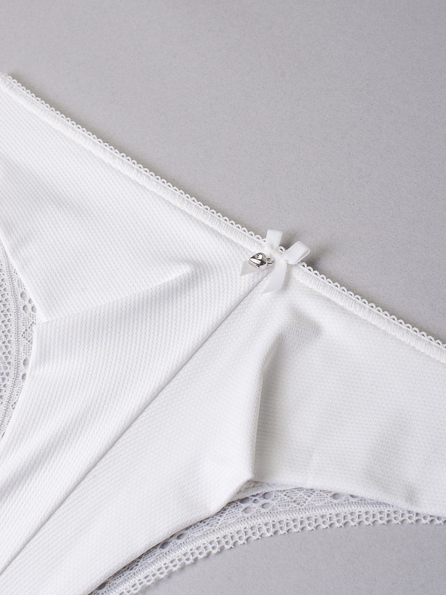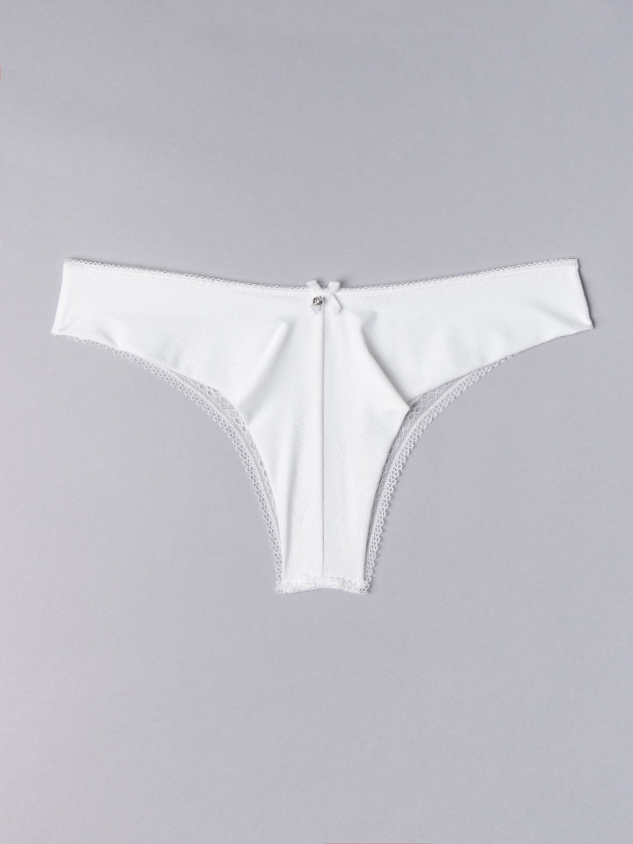 La brasiliana è impreziosita da un fiocco in raso sul retro con piccolo punto luce a forma di cuore, che la rende un vero gioiello di lingerie capace di esaltare la femminilità con raffinatezza.