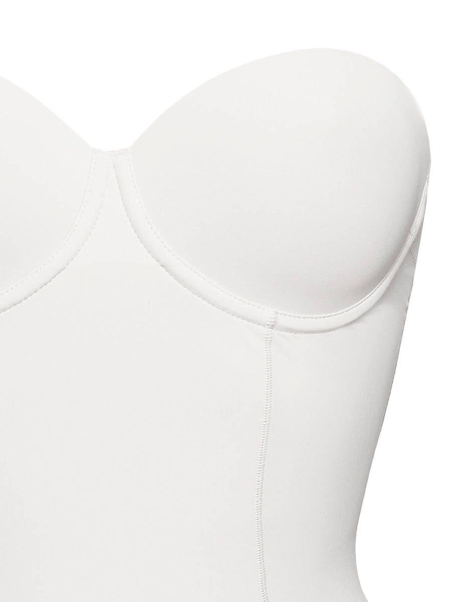 Body con coppe imbottite, ferretto, spalline removibili e taglio laser - BIANCO - 1842