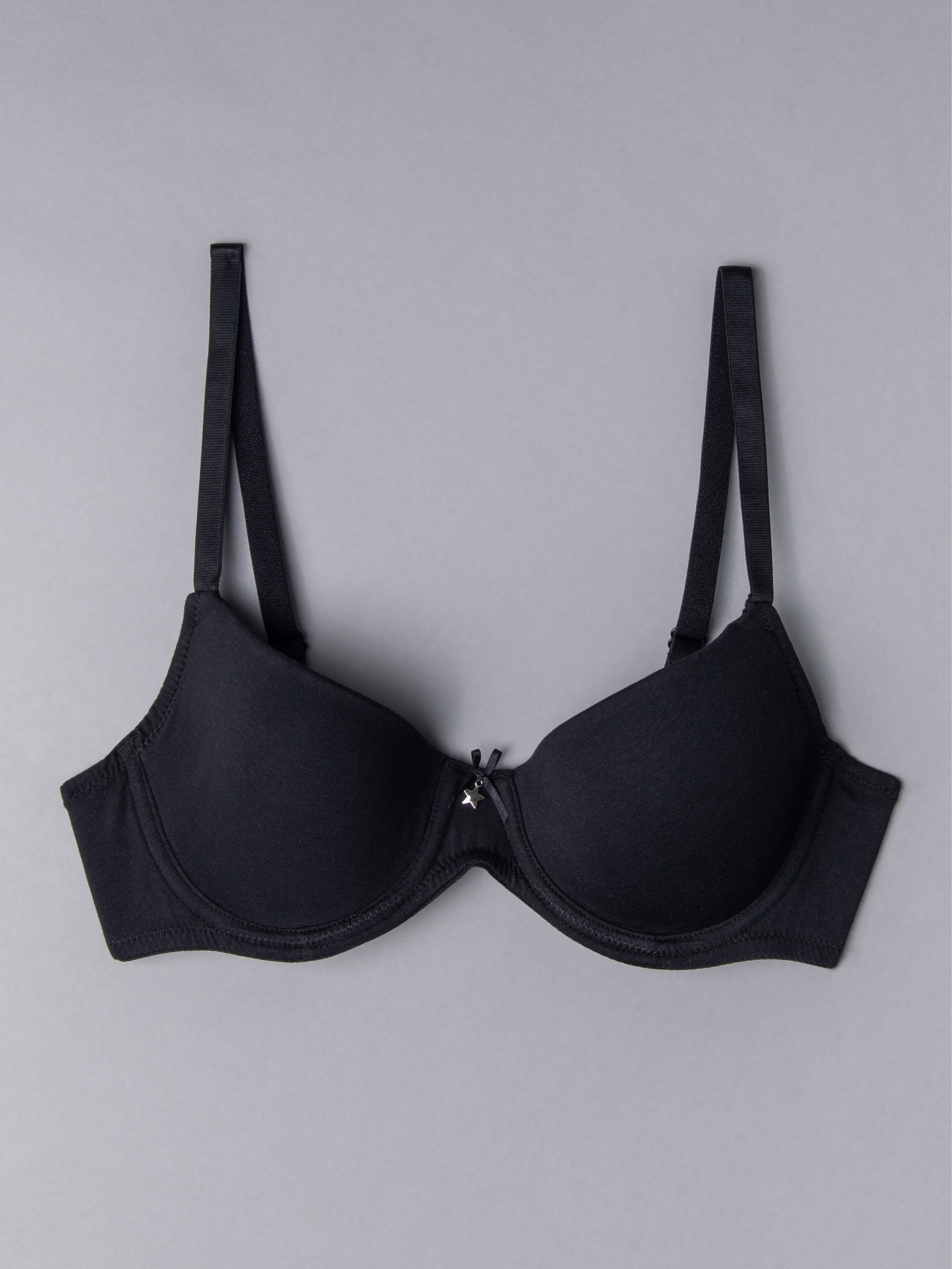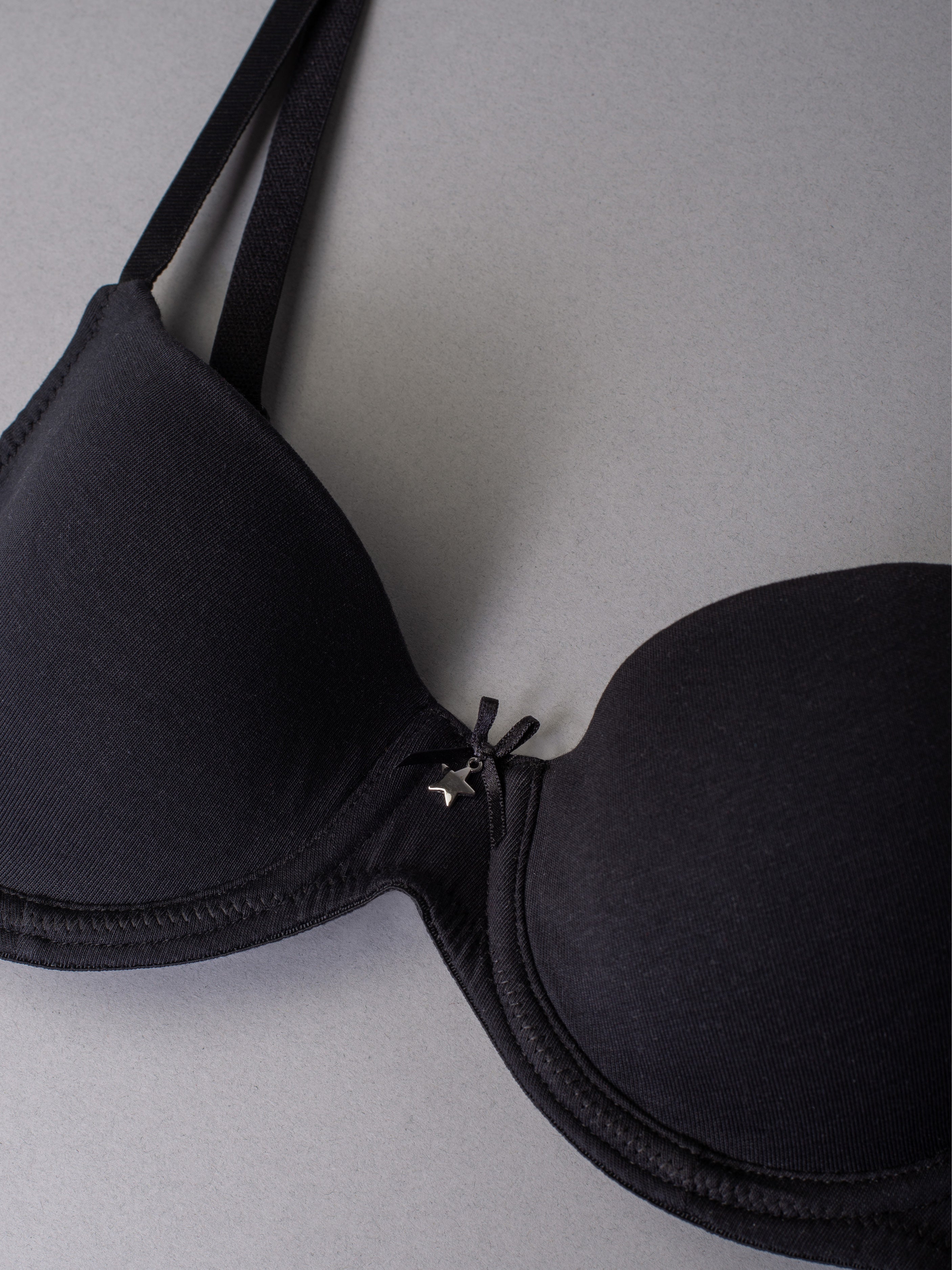 Reggiseno imbottito con ferretto realizzato in cotone bio. Il giusto mix di funzionalità, comodità e qualità anche per taglie coppa differenziata C. Prezioso accessorio gioiello in centroseno...irresistibile!