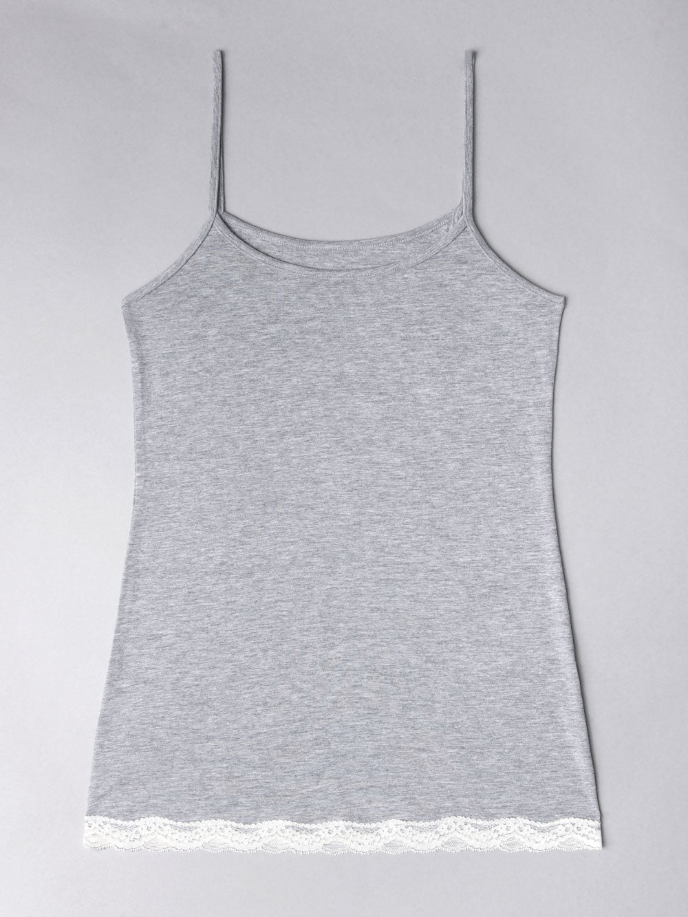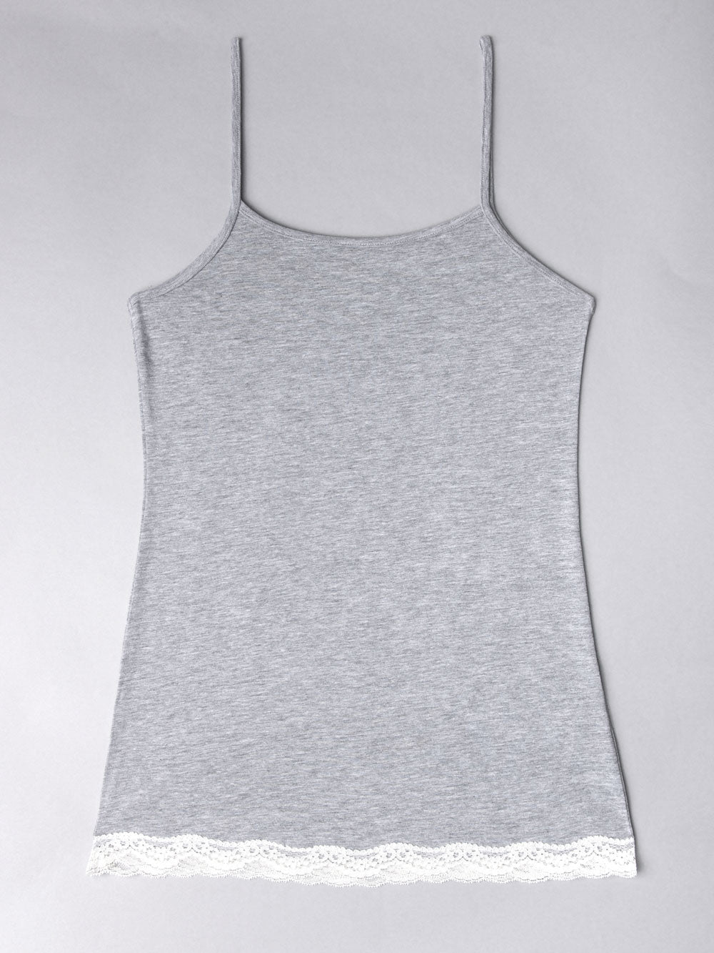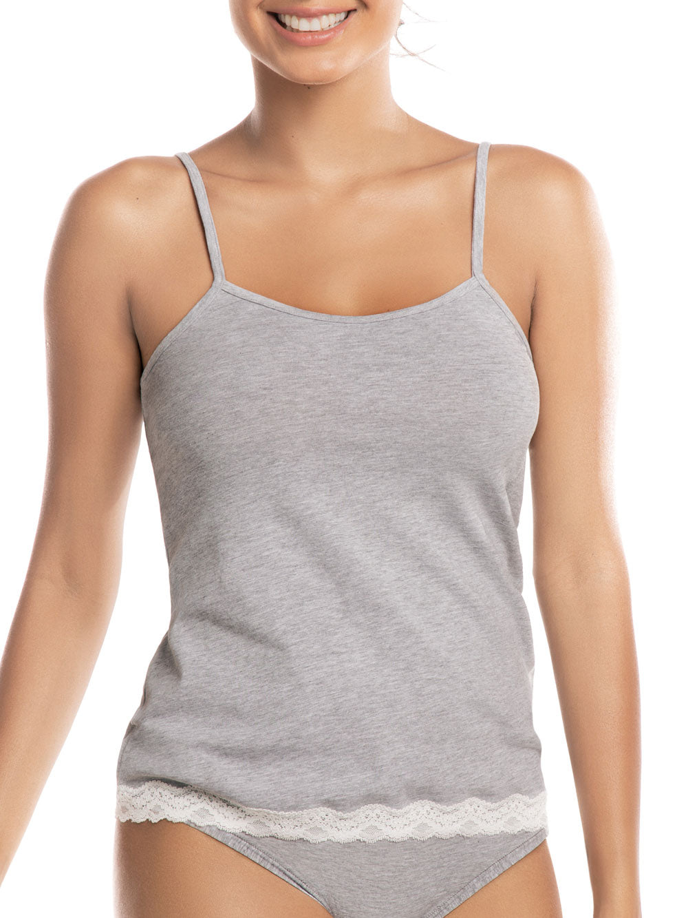 Canotta con spallina sottile e pizzo - GRIGIO MELANGE - 1432