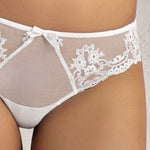 Un perizoma confortevole e dal gusto retrò grazie ai seducenti ricami floreali. Realizzato in morbido tulle e caratterizzato da un raffinato fiocchetto anteriore tono su tono. Tassello 100% cotone.