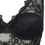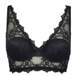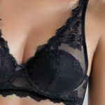 Raffinato top realizzato in seducente tulle elasticizzato e ricamato con motivi floreali. L’imbottitura, il ferretto e la speciale chiusura posteriore garantiscono un elevato sostegno e comfort. Spalline regolabili ed elegante fiocchetto in centroseno tono su tono.