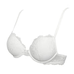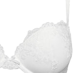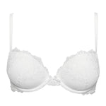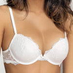 Il modello perfetto per esaltare il décolleté è il push-up con ferretto e coppe graduate realizzato in seducente tulle ricamato con motivi floreali. Spalline regolabili e fiocchetto in centroseno ton sur ton.