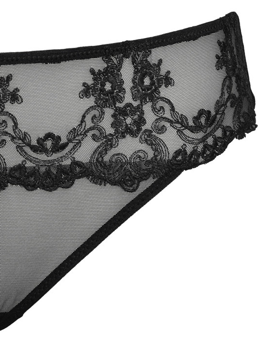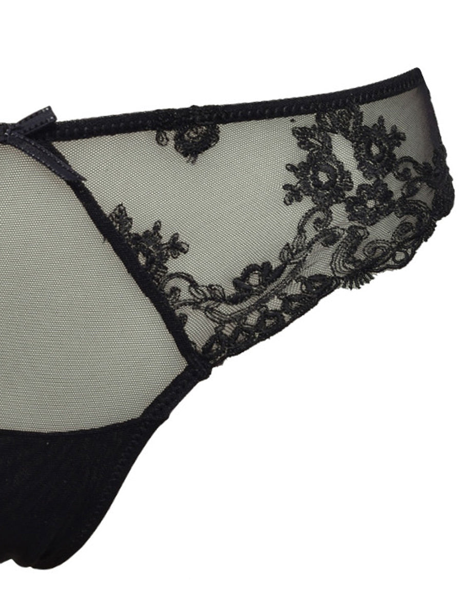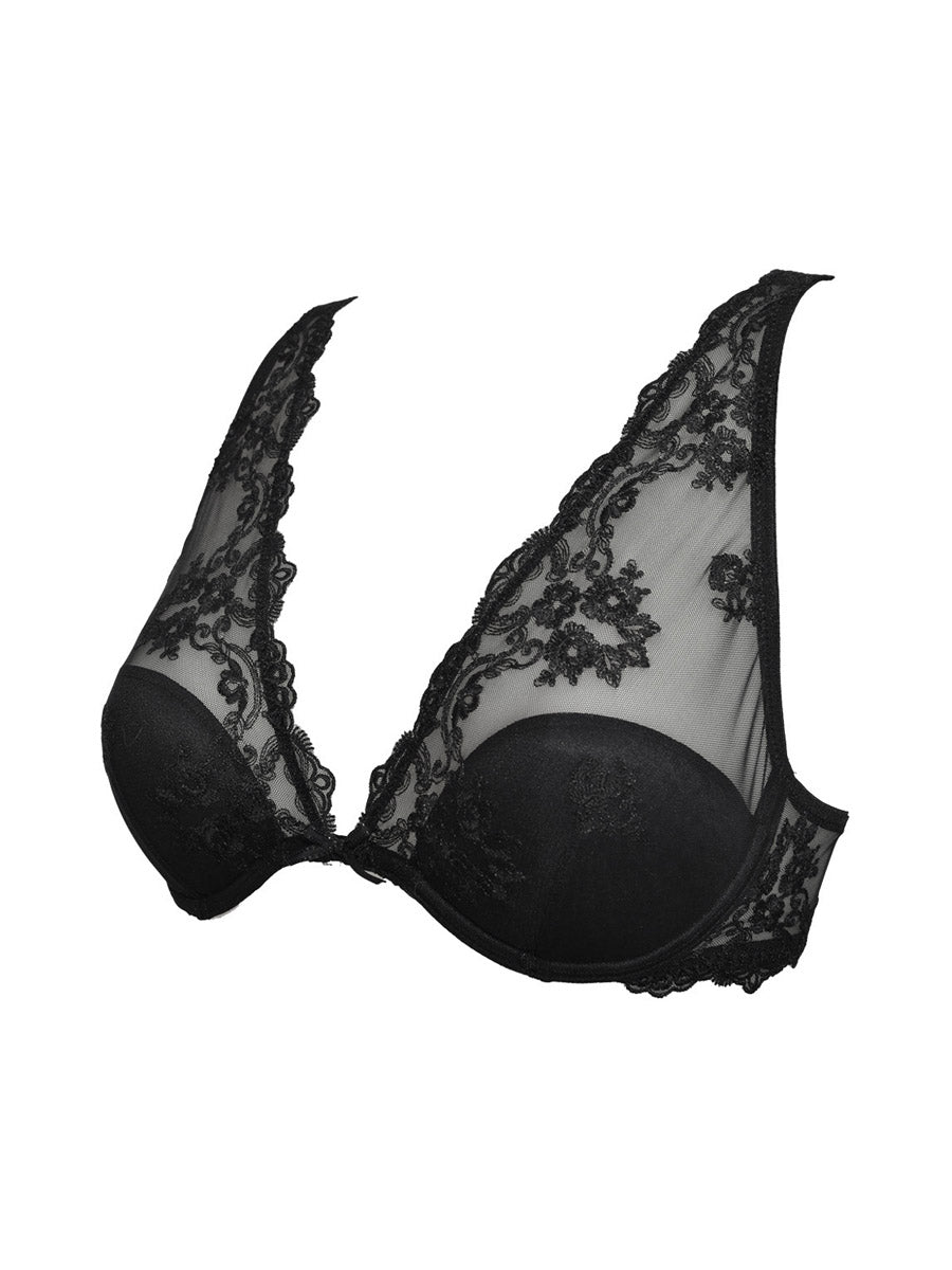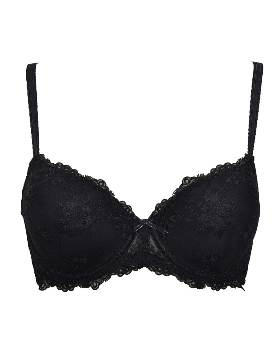 Di assoluta tendenza la bralette con ferretto e coppe imbottite, interamente realizzata in seducente tulle stretch dal prezioso motivo floreale. Spalline regolabili e fiocchetto in centroseno ton sur ton.