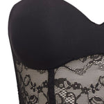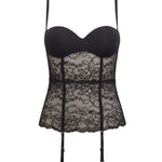 Guepiere con ferretto e coppe graduate realizzata in microfibra stretch semilucida abbinata ad un raffinato pizzo floreale. Velvet e spalline removibili