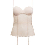 Guepiere con ferretto e coppe graduate realizzata in microfibra stretch semilucida abbinata ad un raffinato pizzo floreale. Velvet e spalline removibili