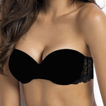 Reggiseno a fascia con ferretto e coppe graduate realizzato in microfibra stretch semilucida abbinata ad un raffinato pizzo floreale. Modello con spalline removibili e stecche laterali