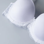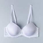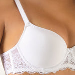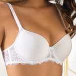 Reggiseno con ferretto e coppe imbottite realizzato in soffice microfibra e pizzo in tono. Un modello altamente confortevole, studiato per assicurare ottima vestibilità per coppe differenziate (disponibile fino alla E), senza rinunciare allo stile ed un tocco di femminilità. Rifinito con fiocchetto in gros-grain a centroseno. Regolatore supplementare per torace incluso.