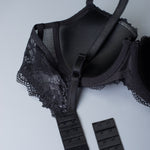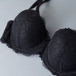Un gioiello di pizzo, tutto da indossare. Reggiseno in total lace, con ferretto e coppe imbottite, con stecche laterali per assicurare ottima vestibilità anche alle coppe differenziate (disponibile dalla B alla E). Rifinito con fiocchetto in gros-grain a centroseno. Regolatore supplementare per torace incluso.