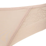 Brasiliana in microfibra stretch matt a tinta unita con elegante lavorazione a motivo floreale in trasparenza sia sul fronte che sul retro. Il modello è caratterizzato dall'assenza di fastidiose ed inestetiche cuciture sui bordi.