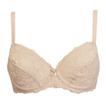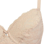 Un modello classico alla francese realizzato in morbido pizzo floreale. Le coppa con taglio orizzontale sono doppiate internamente in tulle e assicurano un'ottima vestibilità. Il torace è in laize di pizzo con spalline regolabili. Dettaglio a centroseno di fiocchetto in raso con gioiello e punto luce.