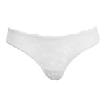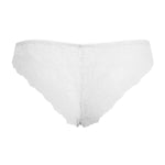 Slip realizzato in raffinata balza di pizzo stretch con cordonetto in rilievo a motivo floreale. Tassello 100% cotone.