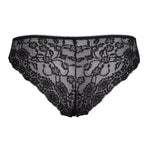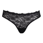 Slip realizzato in raffinata balza di pizzo stretch con cordonetto in rilievo a motivo floreale. Tassello 100% cotone.