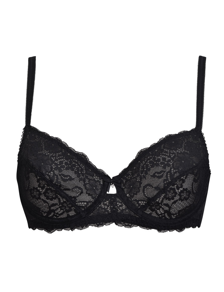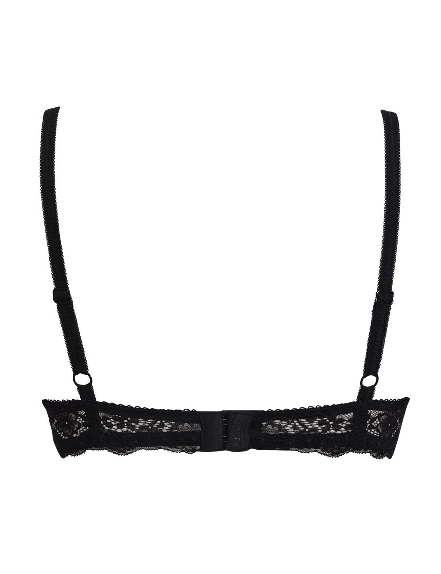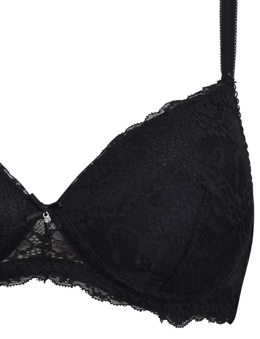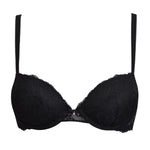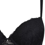 Reggiseno push-up con ferretto e coppe graduate, realizzato in raffinata balza di pizzo stretch con cordonetto in rilievo a motivo floreale ed impreziosito da un galloncino sempre in pizzo. Torace in laize di pizzo con spalline regolabili. Dettaglio a centroseno di fiocchetto in raso con gioiello e punto luce