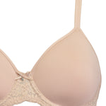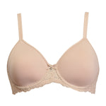 Reggiseno con "coppe spacer": massima traspirabilità e morbidezza a contatto con la pelle. Modello completo con torace in pizzo in tono e piccole stecche laterali.