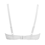 Reggiseno con "coppa Memory", realizzata in tessuto termosensibile, che diventa ancora più morbida col calore del corpo donando morbidezza senza costrizioni o rigidità. Torace in laize di pizzo con spalline regolabili. Dettaglio a centroseno di fiocchetto di raso con gioiello e punto luce.