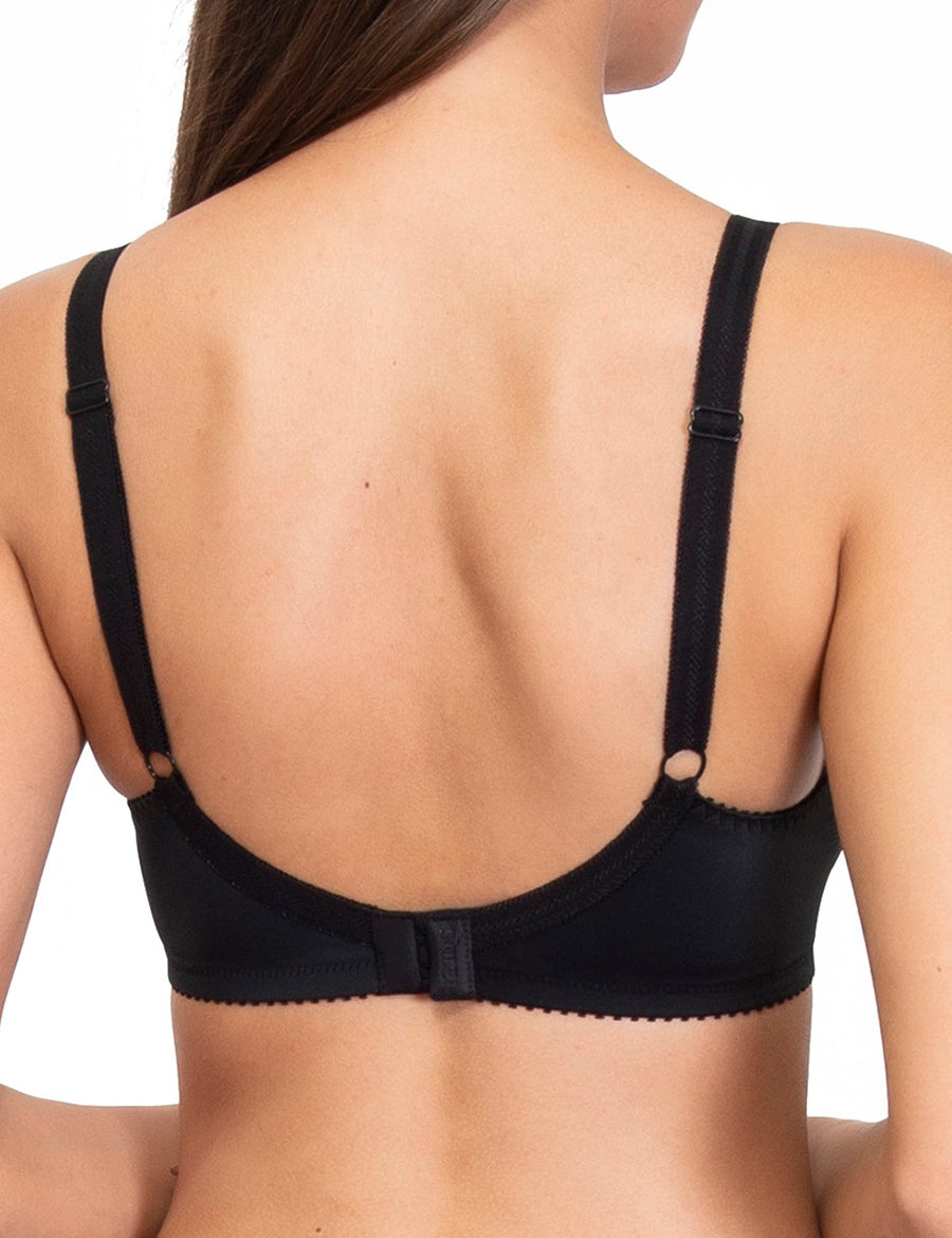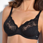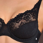 Reggiseno francese con ferretto, realizzato in morbido pizzo e foderato in cotone, con spalline regolabili.