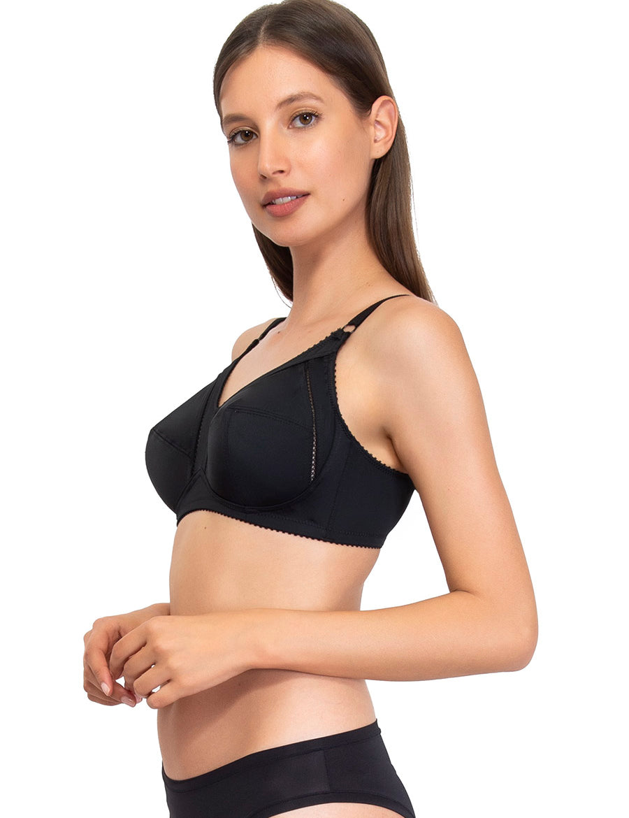 Reggiseno con ferretto in microfibra stretch unita. Le coppe sono doppiate internamente in cotone, le spalline sono regolabili.