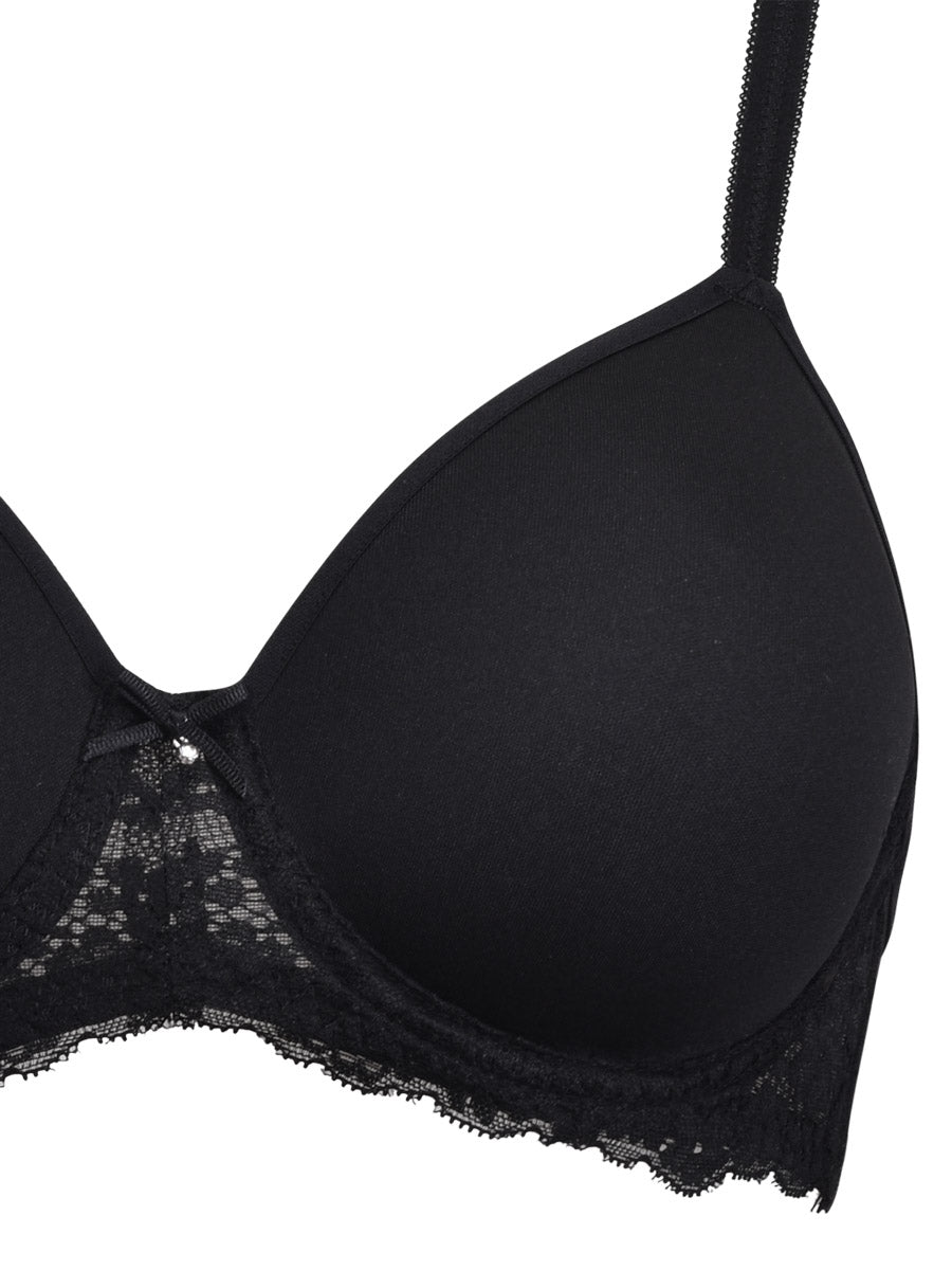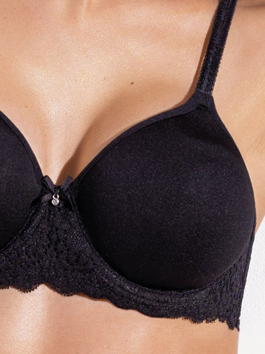 Reggiseno con "coppe spacer": massima traspirabilità e morbidezza a contatto con la pelle. Modello completo con torace in pizzo in tono e piccole stecche laterali.