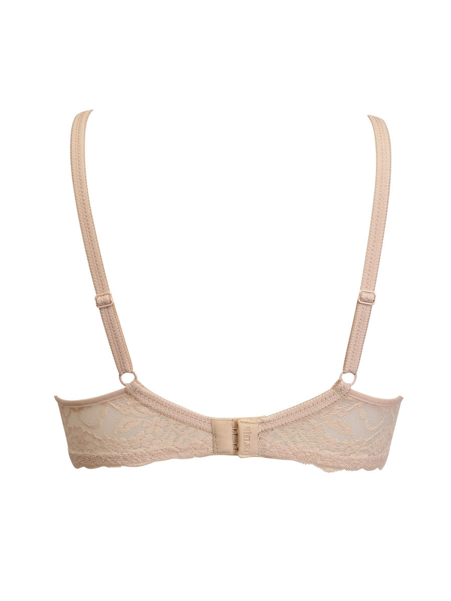 Reggiseno con "coppe spacer": massima traspirabilità e morbidezza a contatto con la pelle. Modello completo con torace in pizzo in tono e piccole stecche laterali.