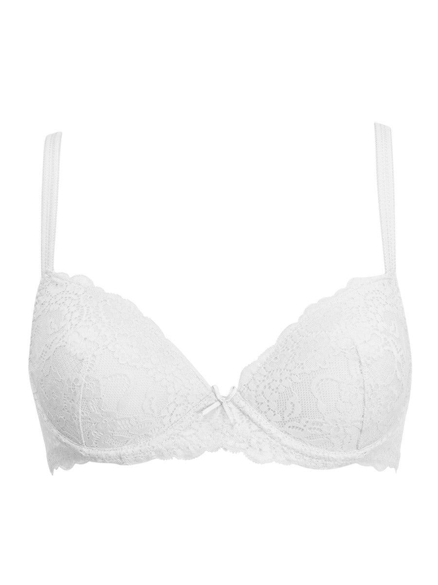 Reggiseno con "coppa Memory", realizzata in tessuto termosensibile, che diventa ancora più morbida col calore del corpo donando morbidezza senza costrizioni o rigidità. Torace in laize di pizzo con spalline regolabili. Dettaglio a centroseno di fiocchetto di raso con gioiello e punto luce.
