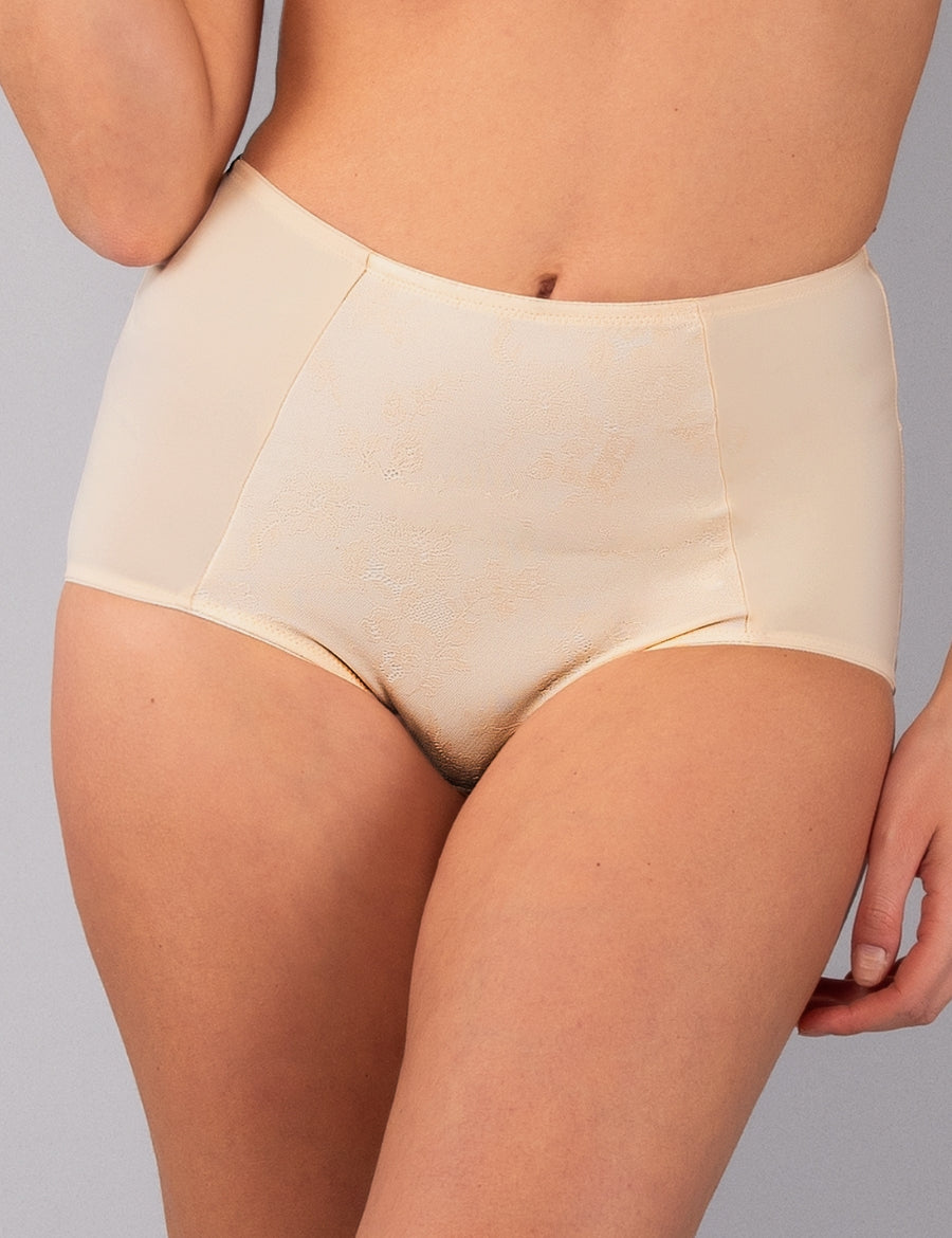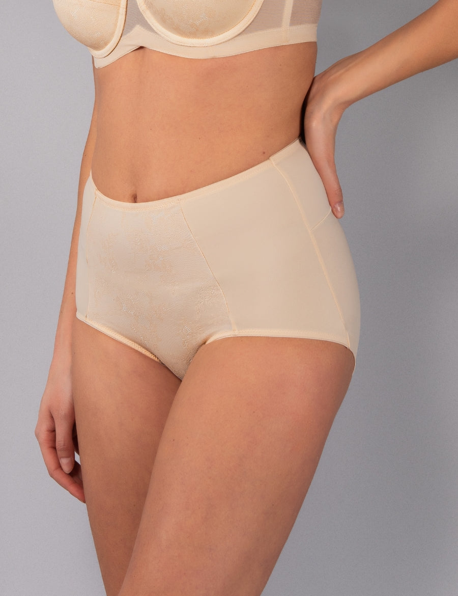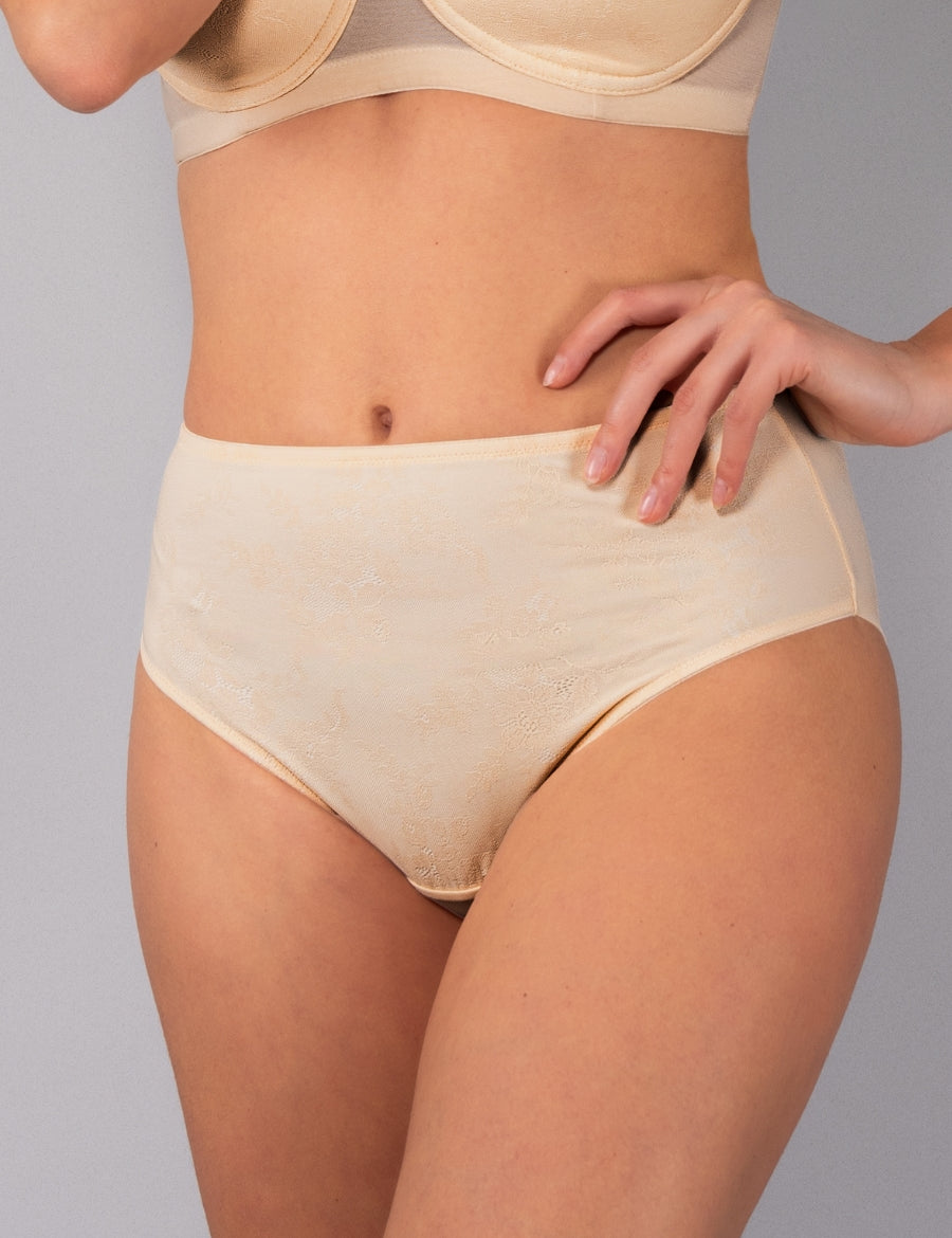 La coppa è realizzata in microfibra, abbinata a un tulle con motivo floreale che dona leggerezza e un raffinato gioco di trasparenze.