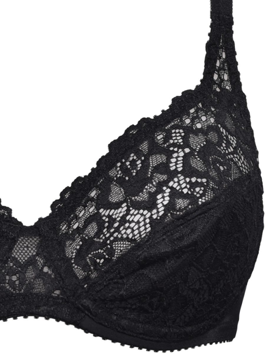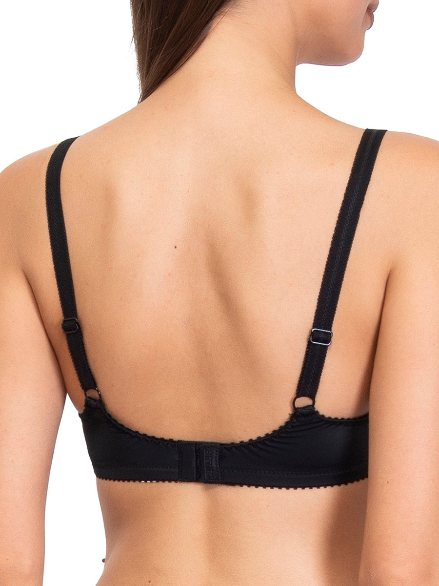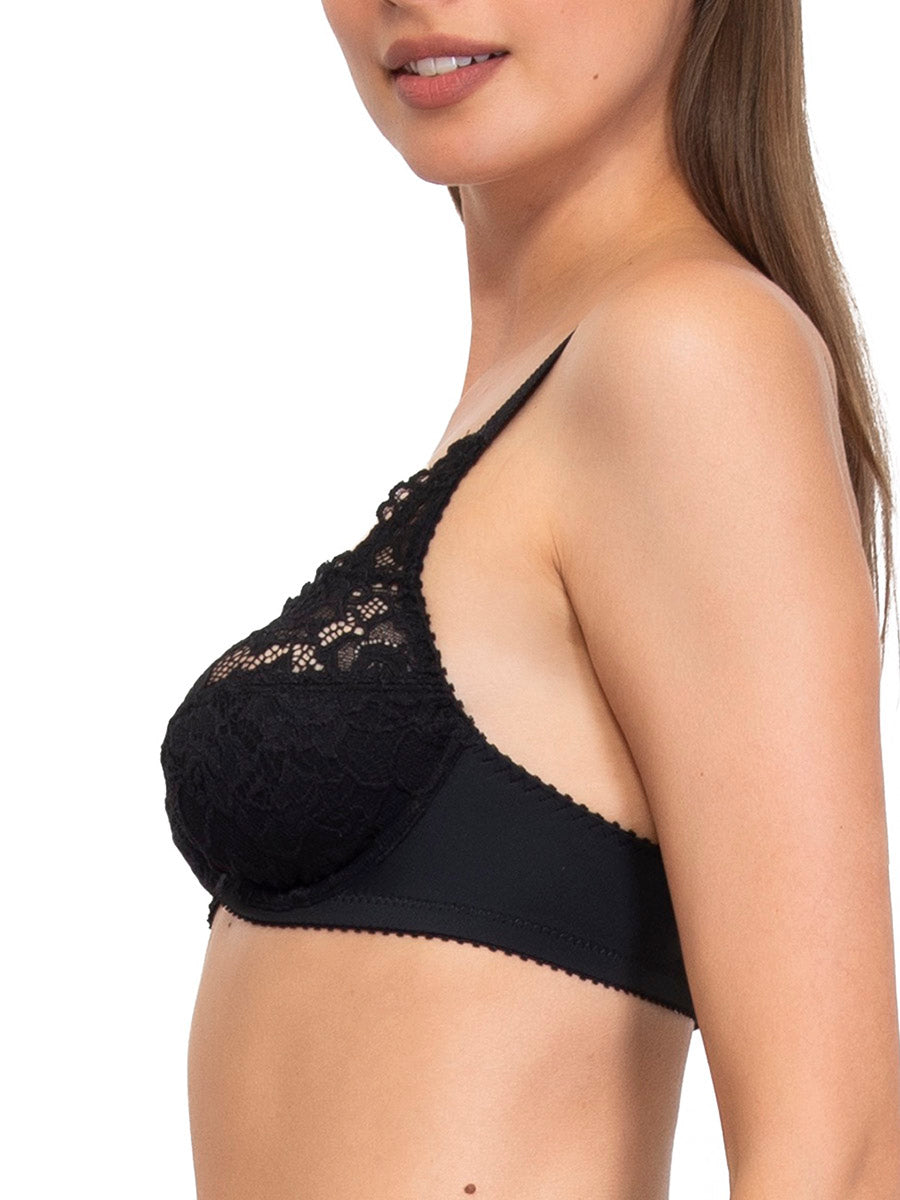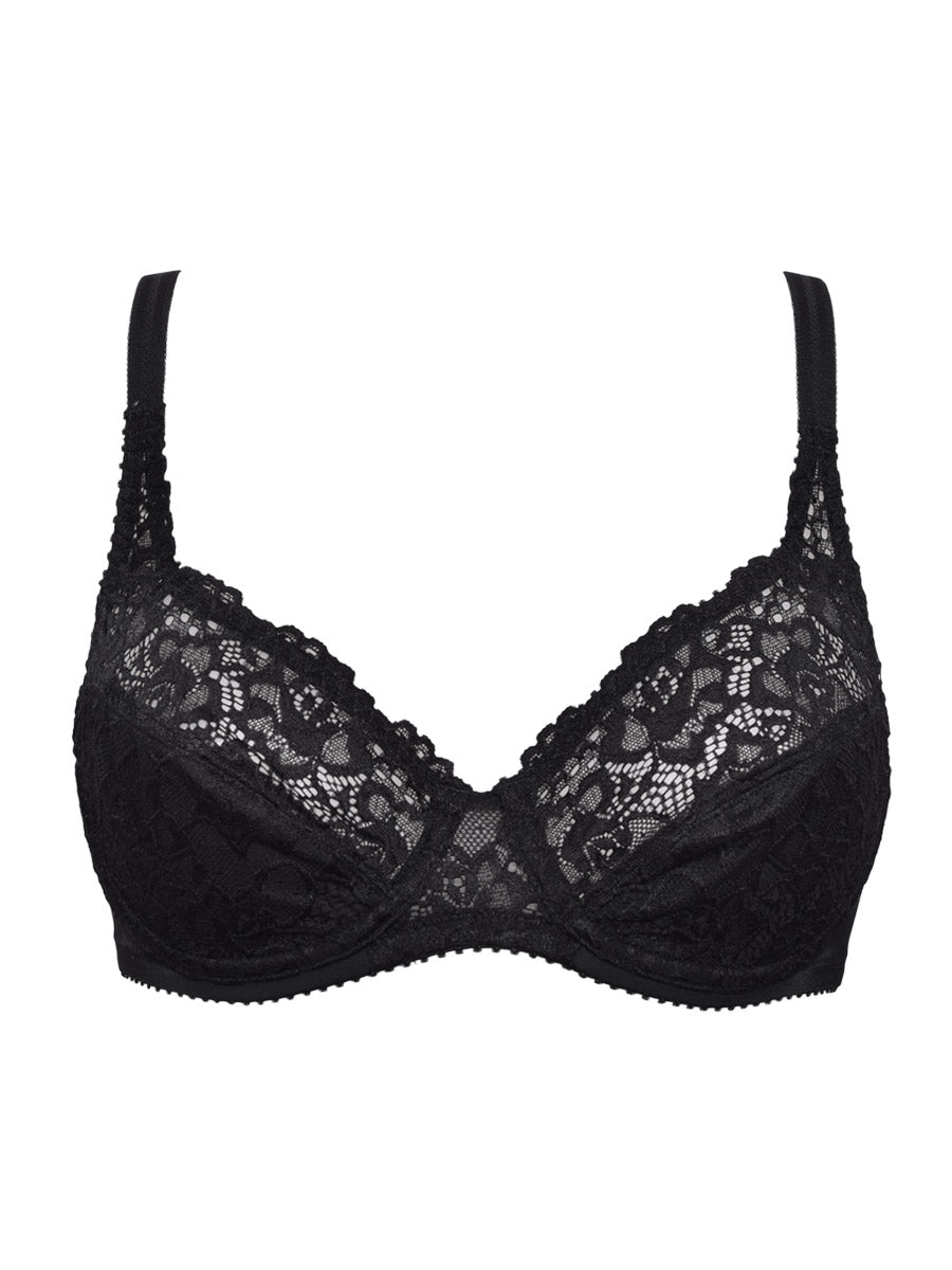 Reggiseno francese con ferretto, realizzato in morbido pizzo e foderato in cotone, con spalline regolabili.
