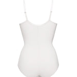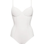 Body con coppe imbottite e ferretto invisibile, realizzato in microfibra stretch delicatamente contenitiva. Il modello è caratterizzato dal pannello frontale doppiato per assicurare un maggiore effetto shaping, taglio laser sulle sgambature e spalline regolabili.