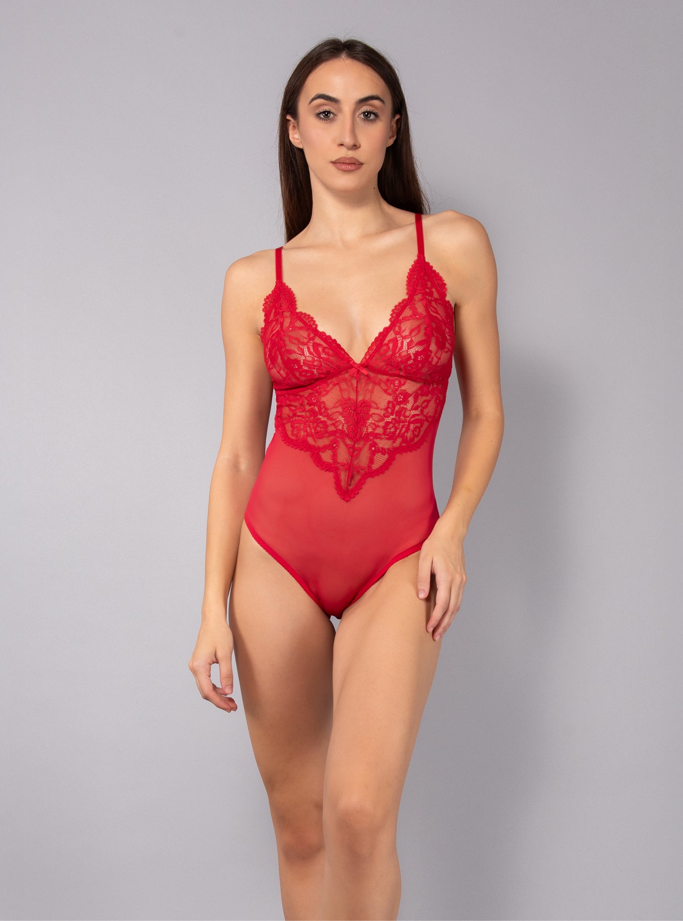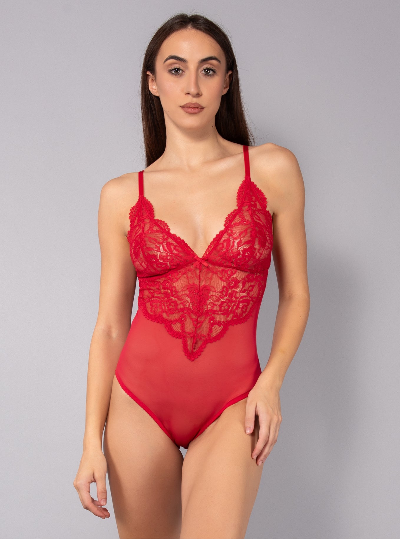 Questo body combina pizzo floreale con smerlo sulle coppe e tulle elasticizzato nella parte inferiore, per un effetto elegante e seducente.Comfort e femminilità