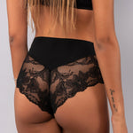 Slip alto taglio laser in cotone e pizzo - NERO - 5119