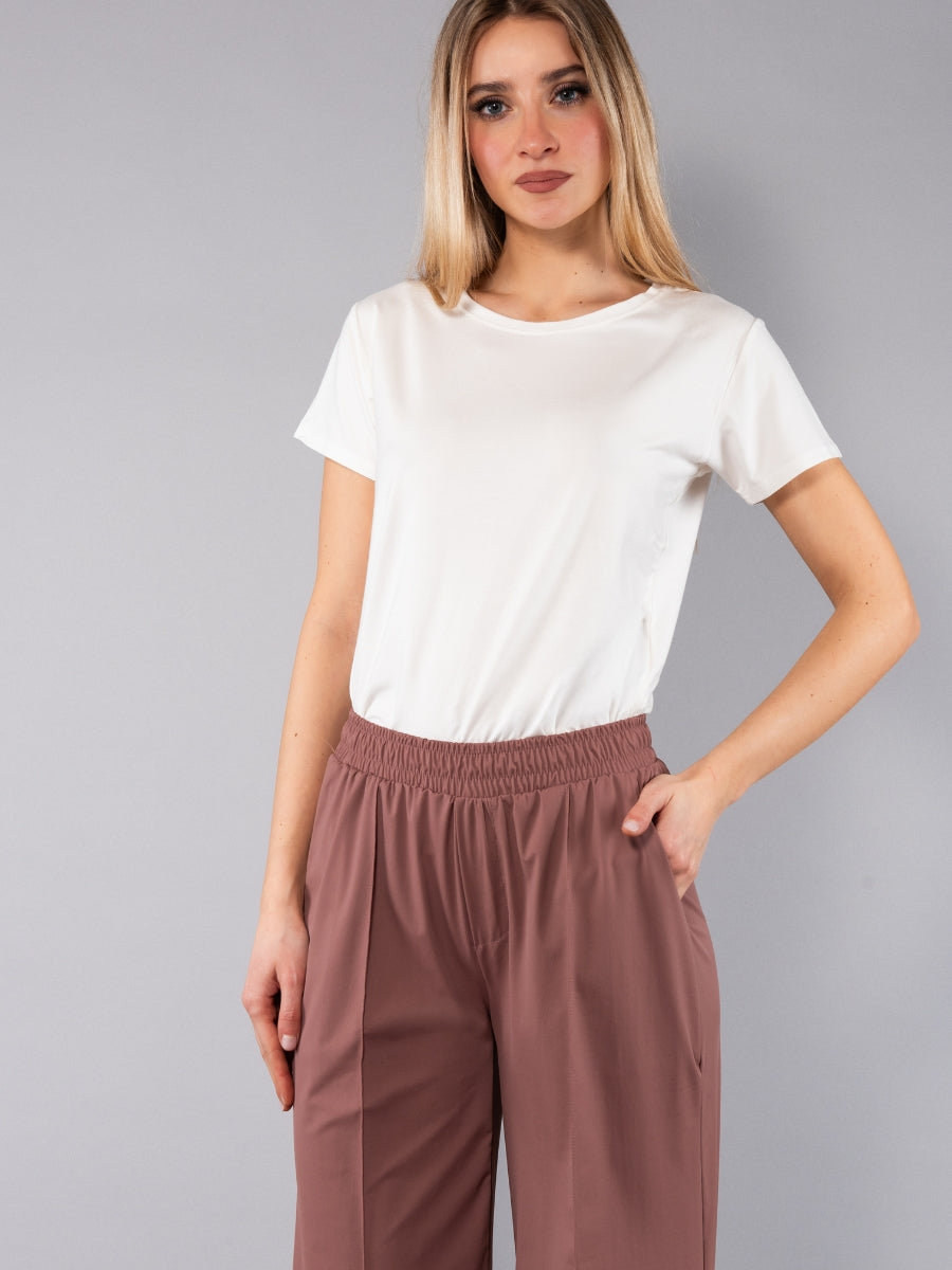 L'equilibrio perfetto tra estetica sartoriale e praticità quotidiana. Il nuovo pantalone largo SièLei è progettato per la donna moderna che cerca un capo impeccabile da mattina a sera. Grazie alla speciale composizione del tessuto, questo pantalone mantiene una linea fluida e ordinata, resistendo naturalmente alle pieghe.