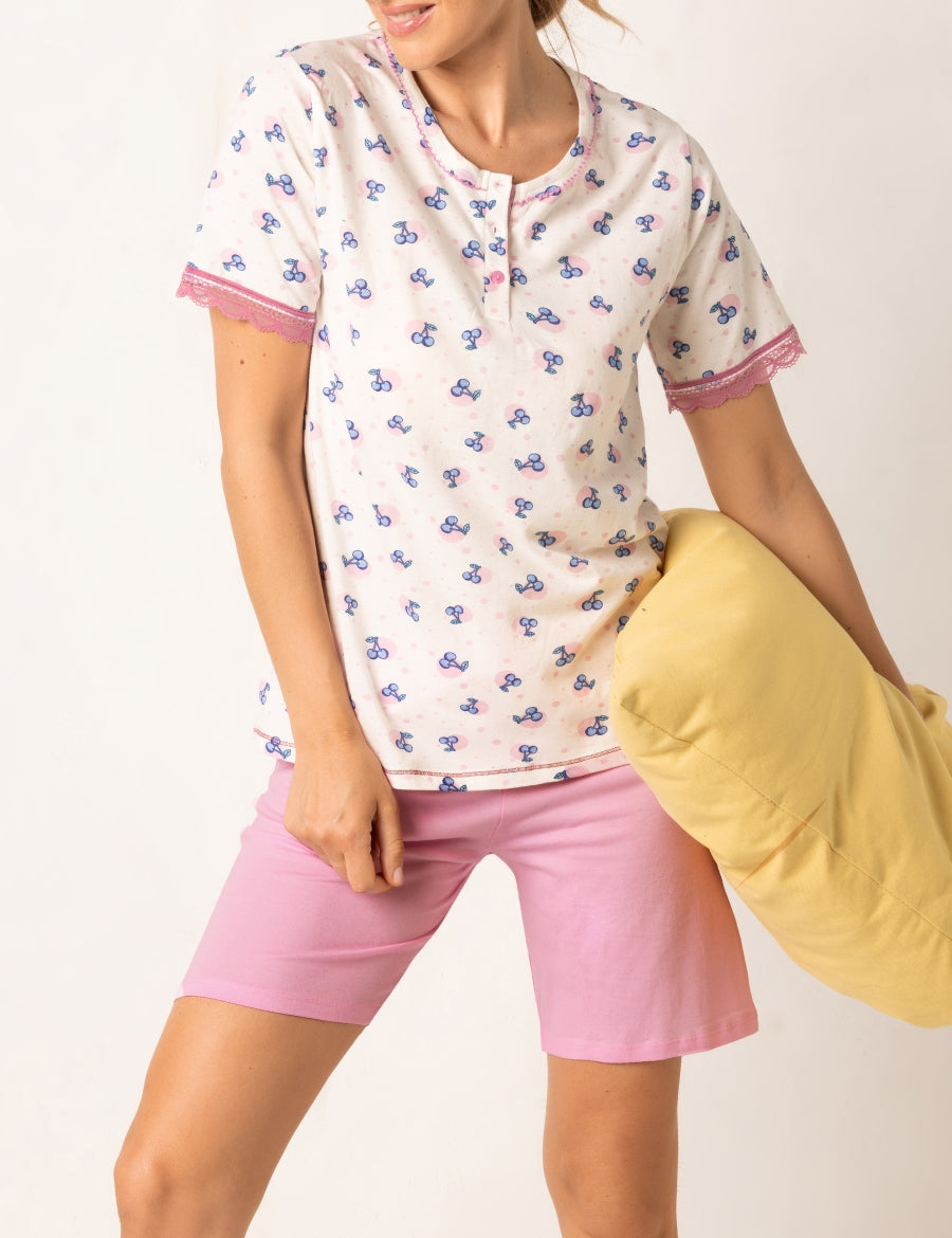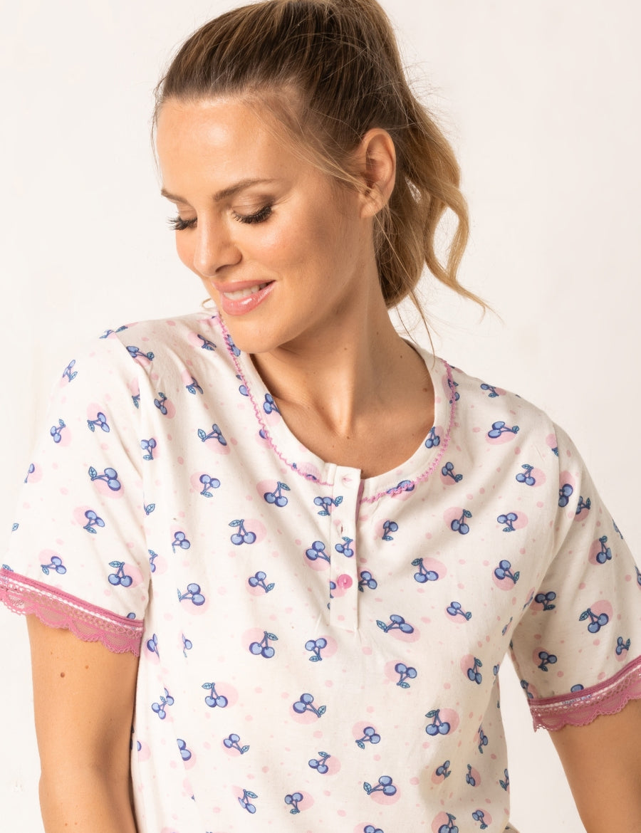Pigiama Serafino Corto in Cotone Stampa Ciliegie - CH11