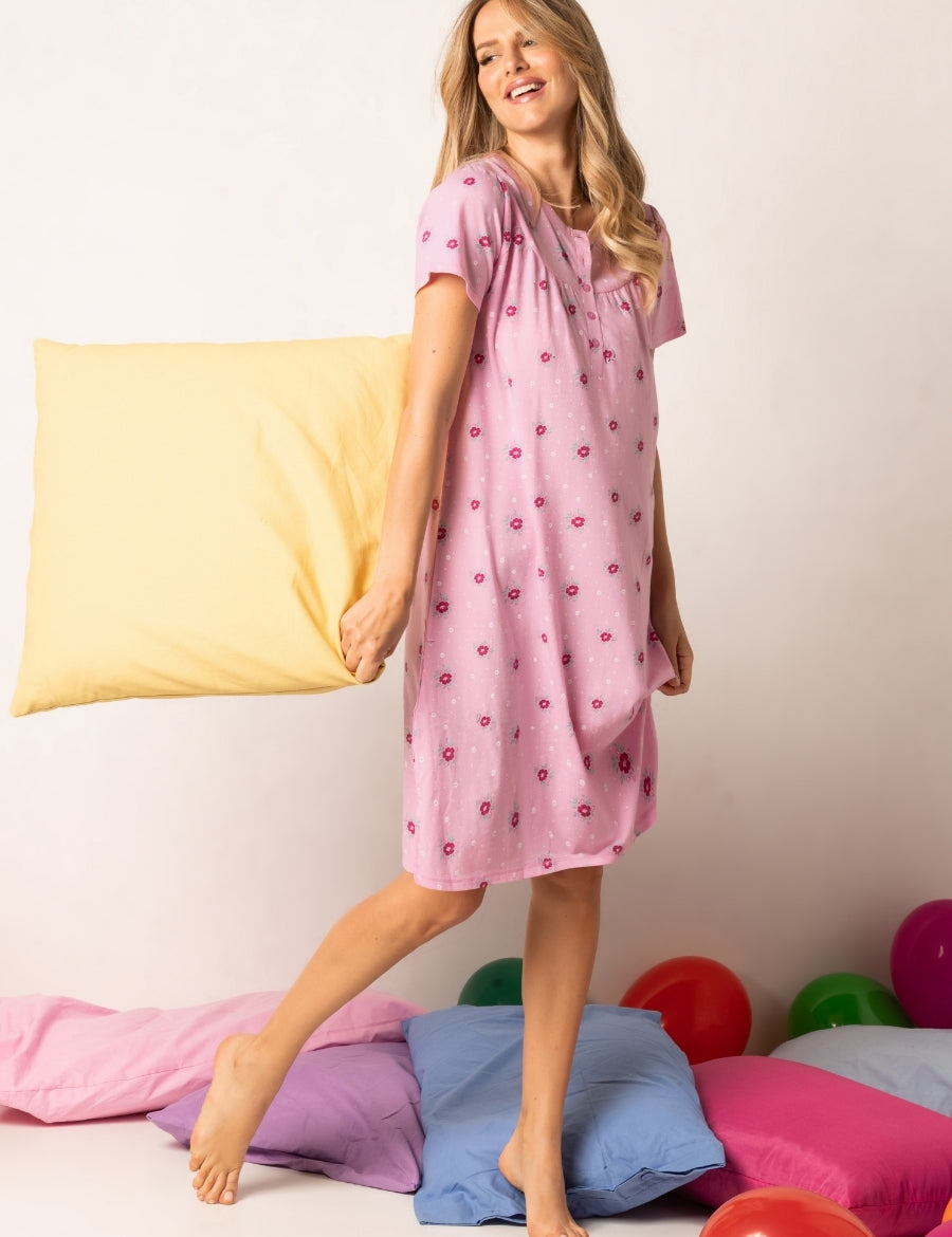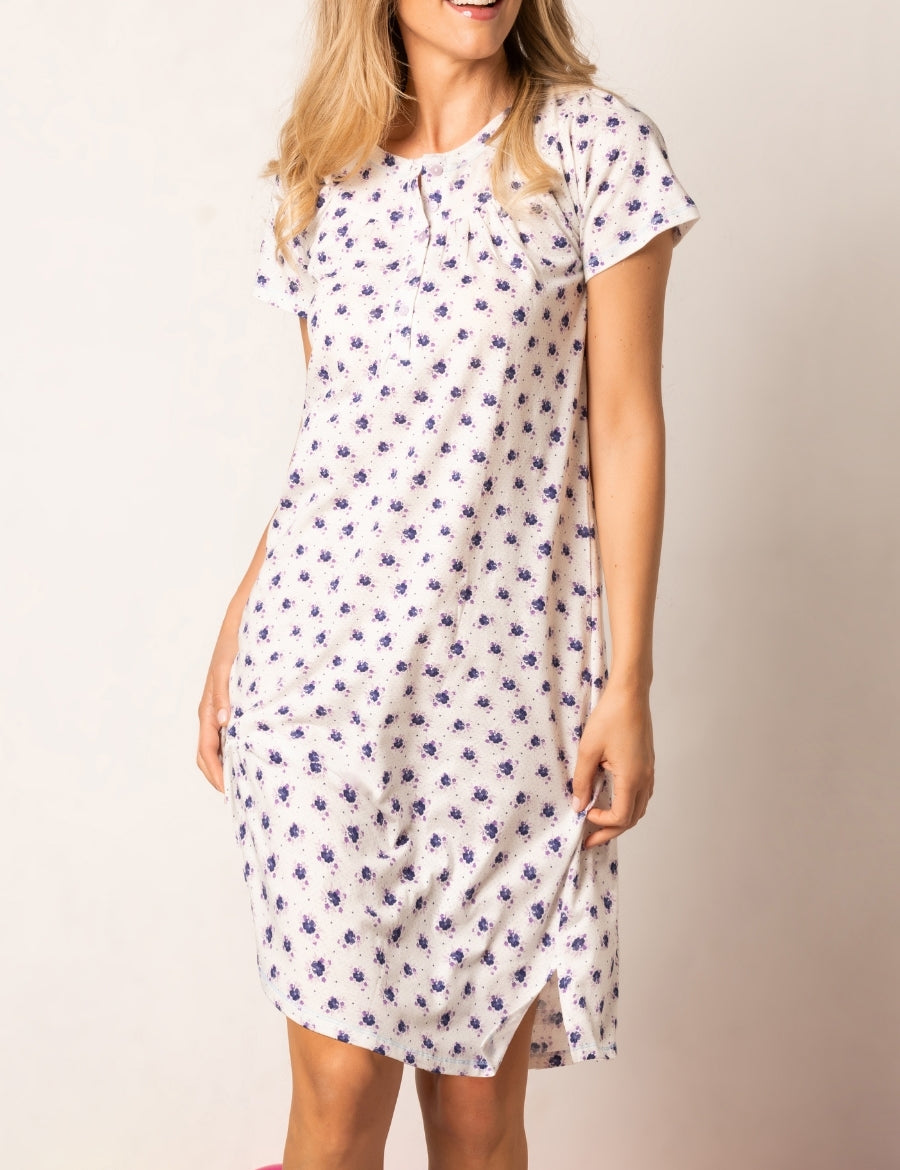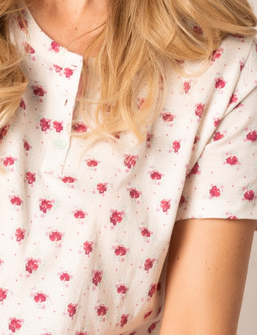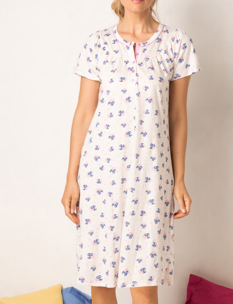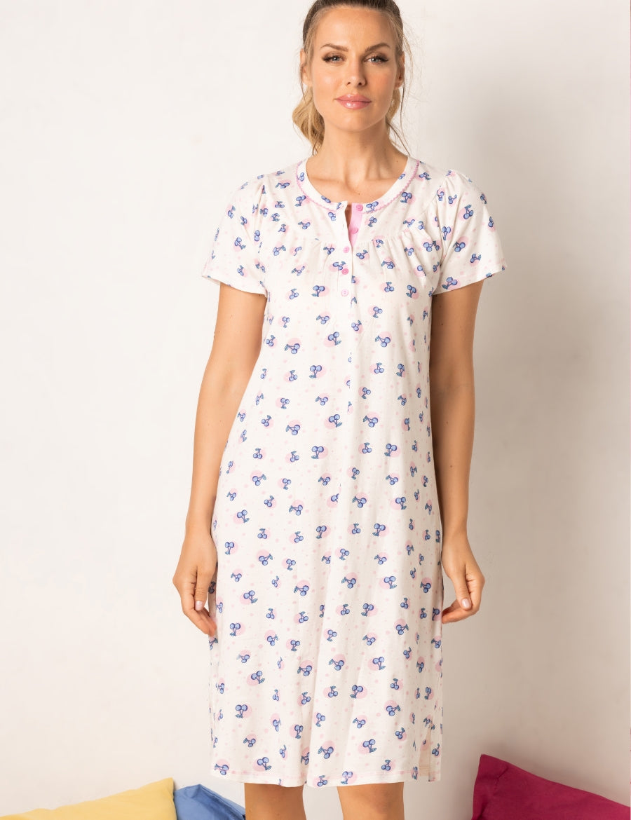 Camicia da Notte Manica Corta 100 cm con Collo Serafino e Stampa Floreale - PN26