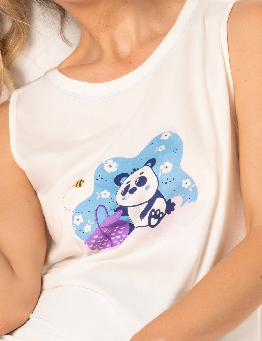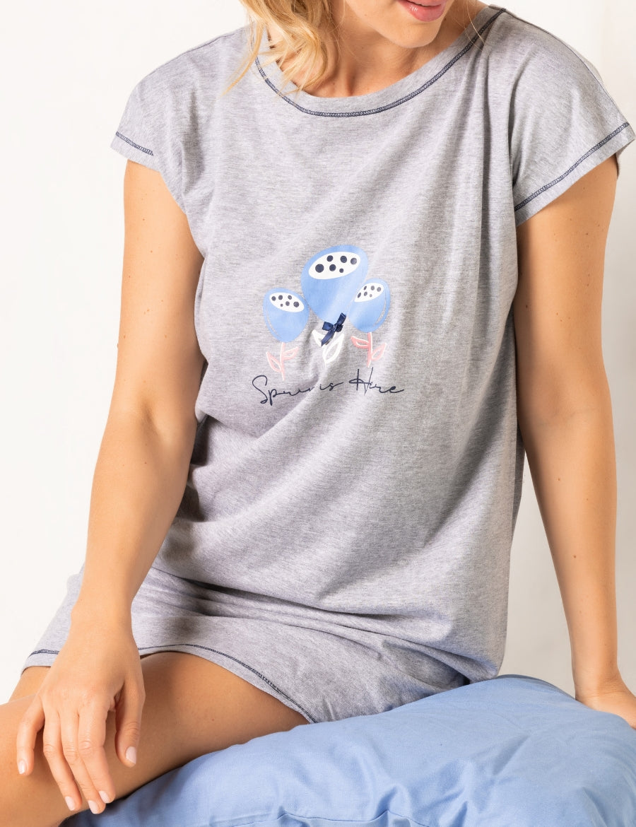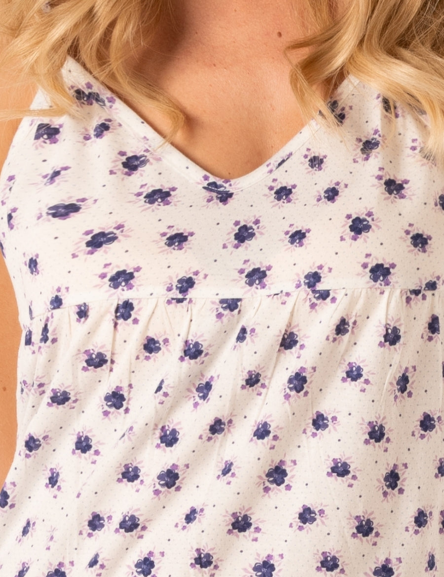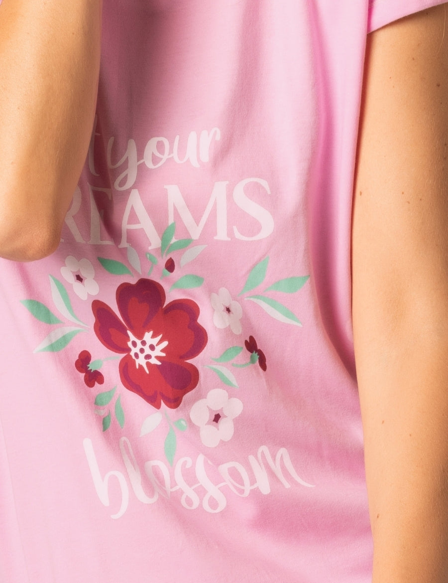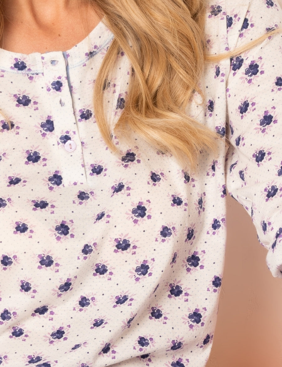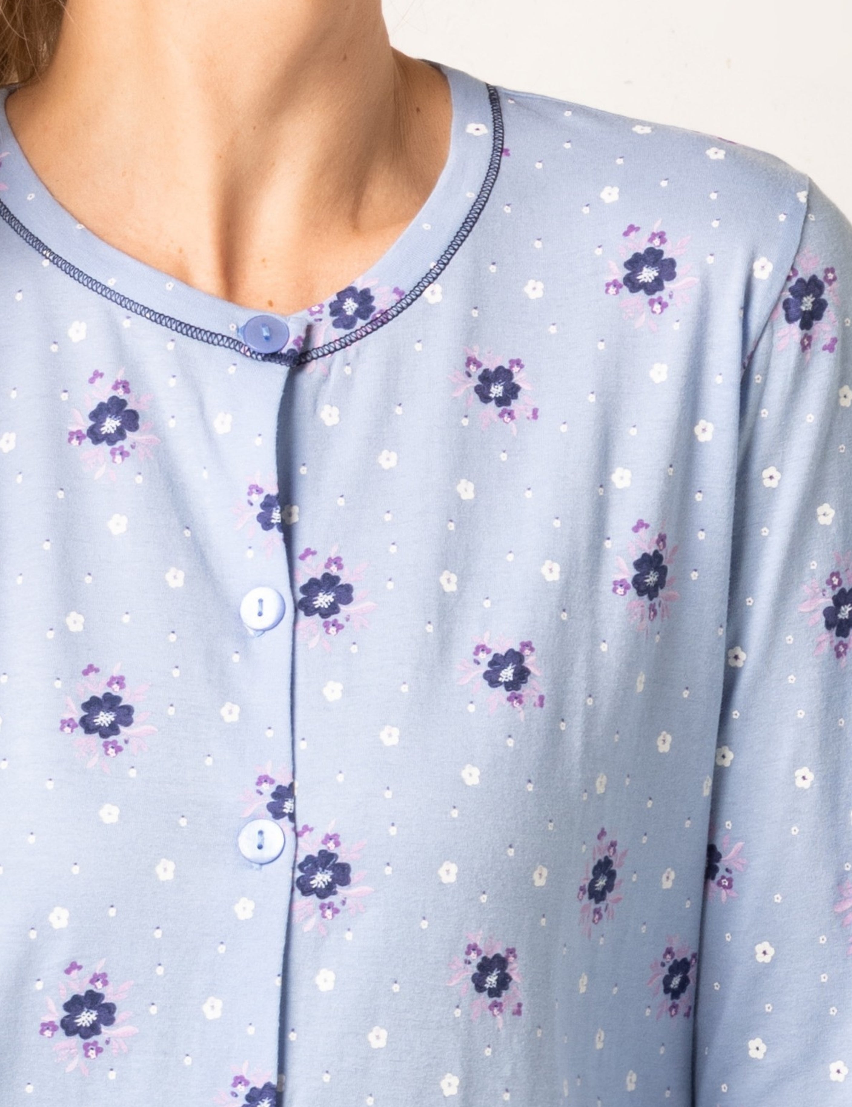 Camicia da Notte Manica Corta 100 cm con Collo Serafino e Stampa Floreale - PN26