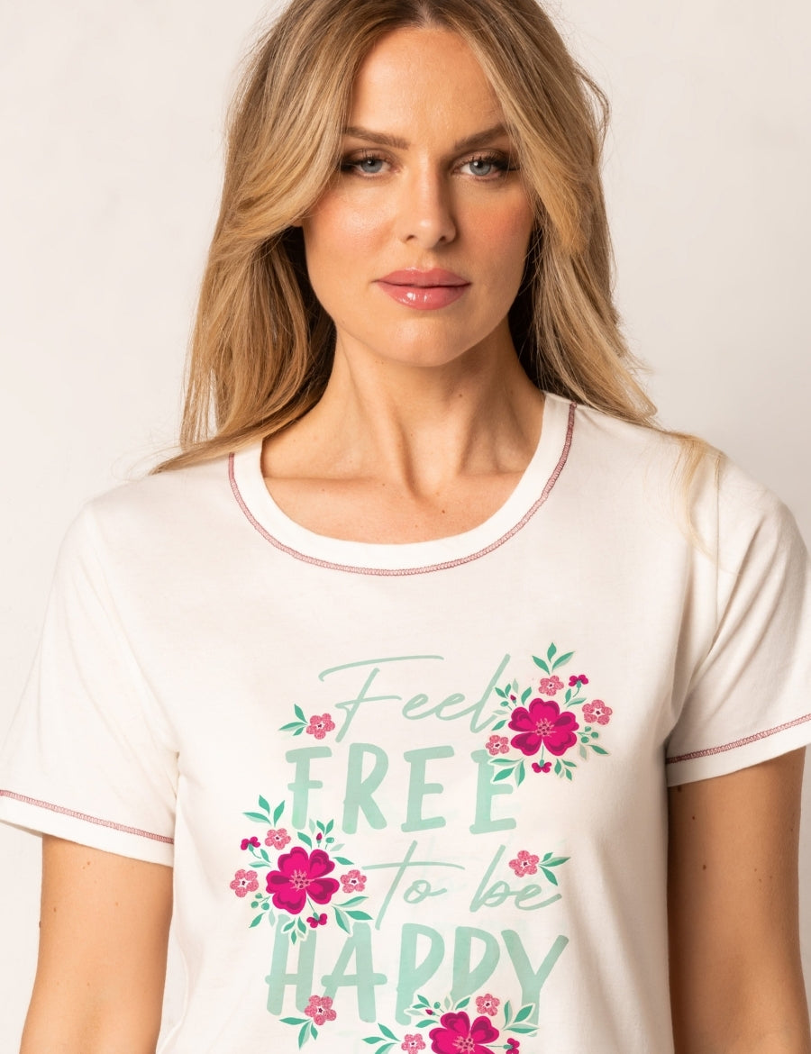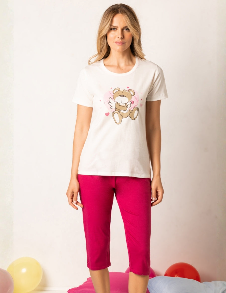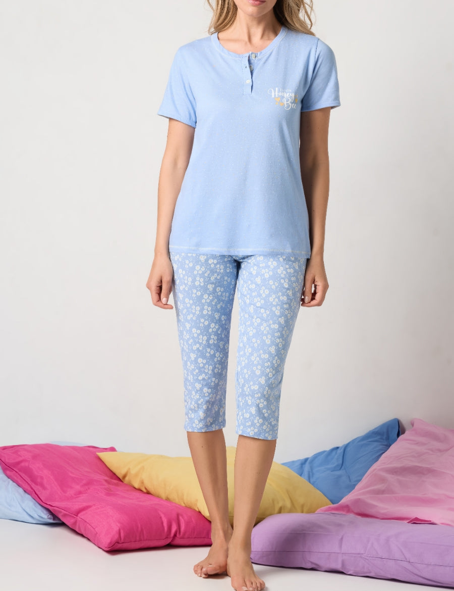 Pigiama Girocollo Manica Corta e Pantalone Pinocchietto in Cotone - LO12