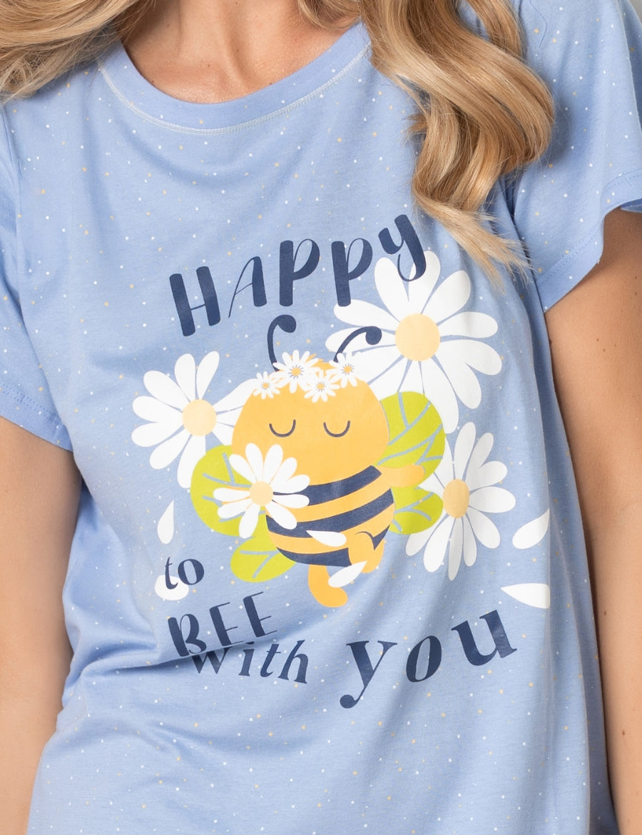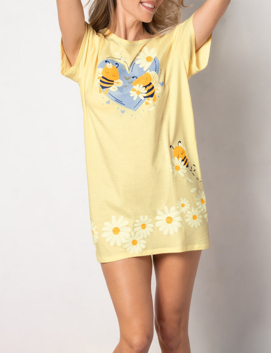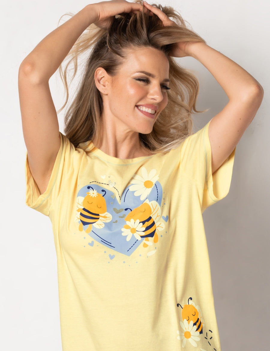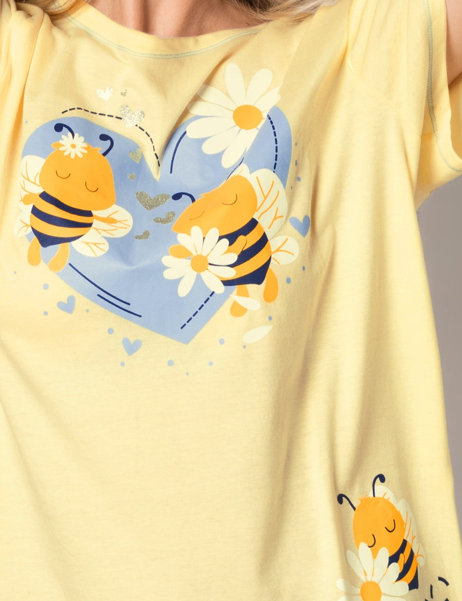 Maxi Maglia in Cotone con Stampa Piazzata di Api e Maxi Margherite - DA42