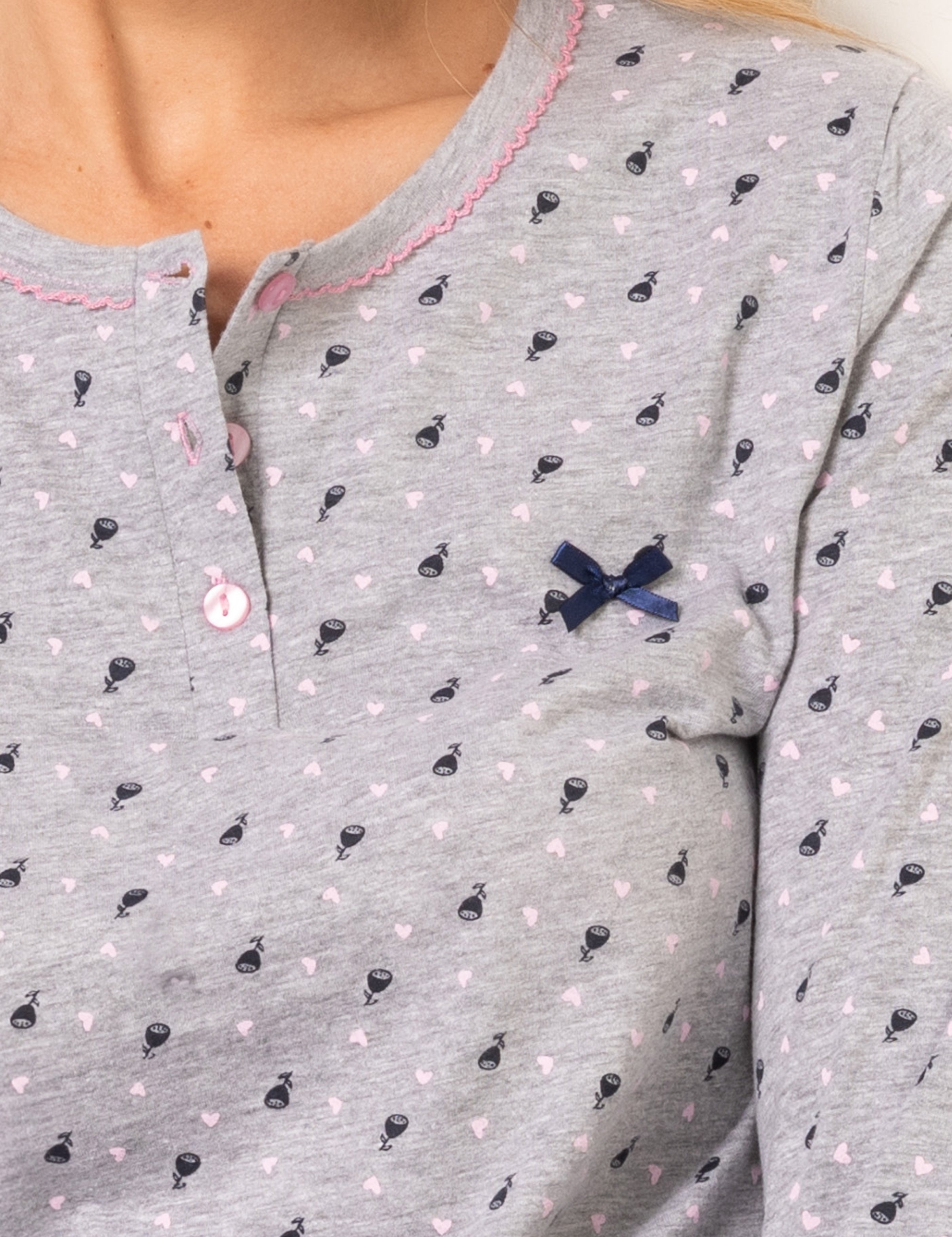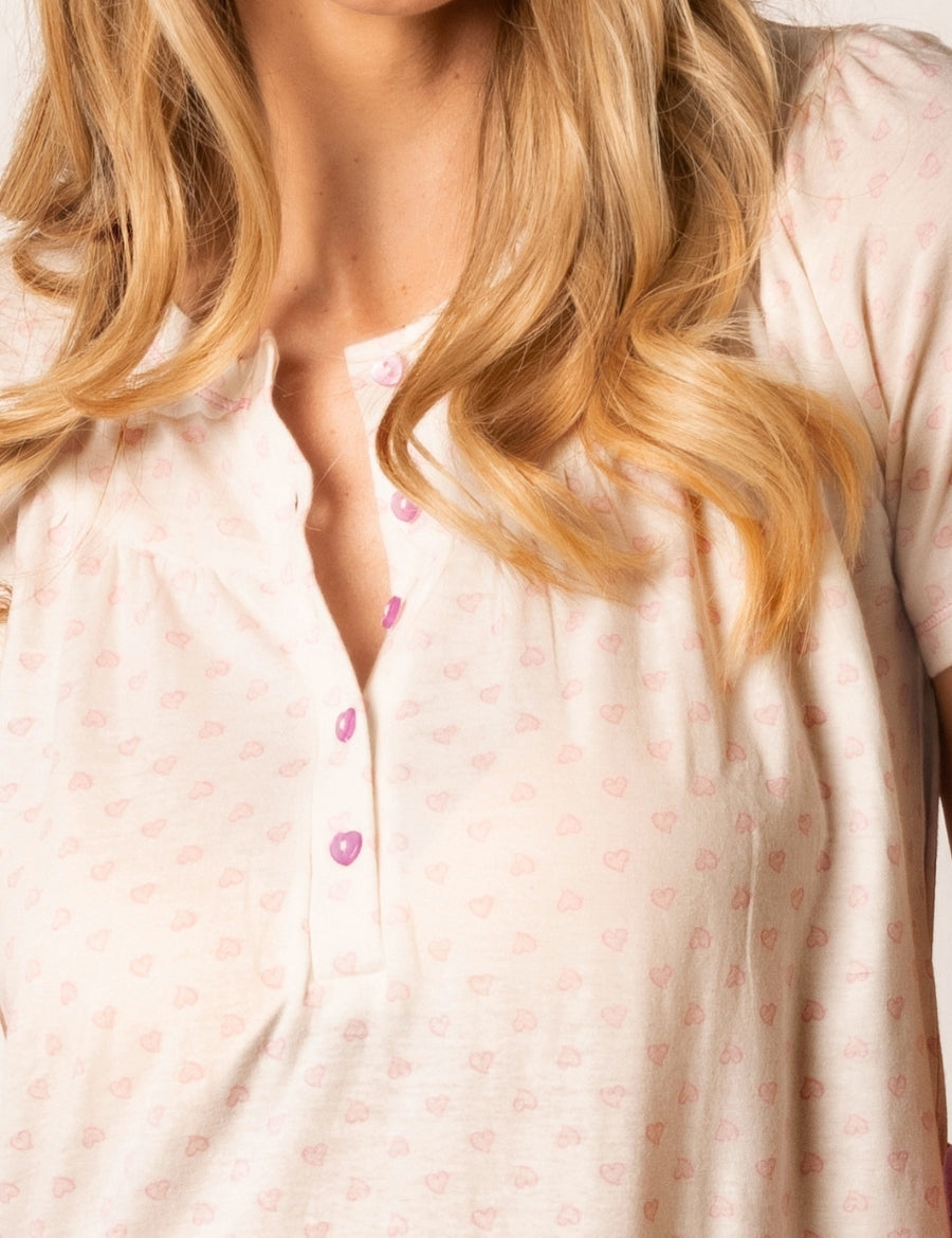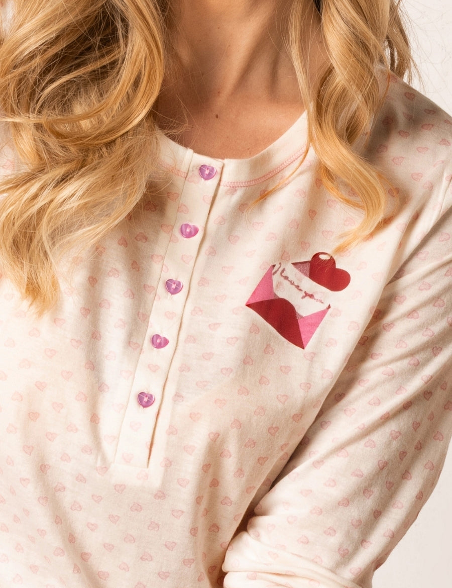Pigiama Serafino Lungo in Cotone con Cuoricini - LO15