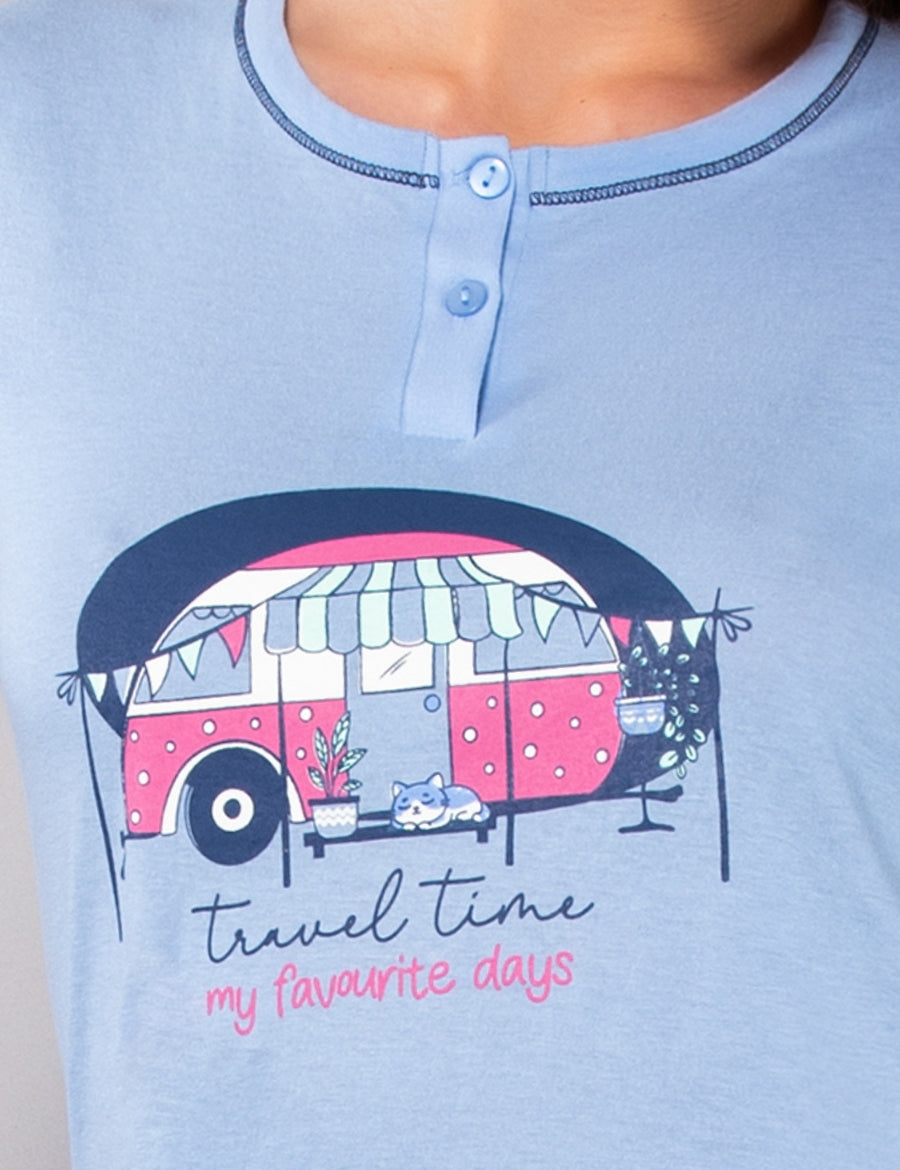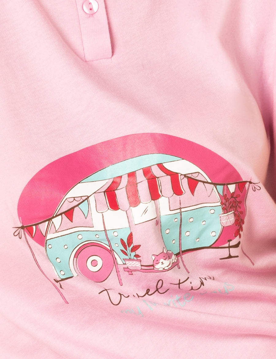 Pigiama Serafino Donna Cotone 100% Weekend Vibes | Rosa e Ciliegia - ST11