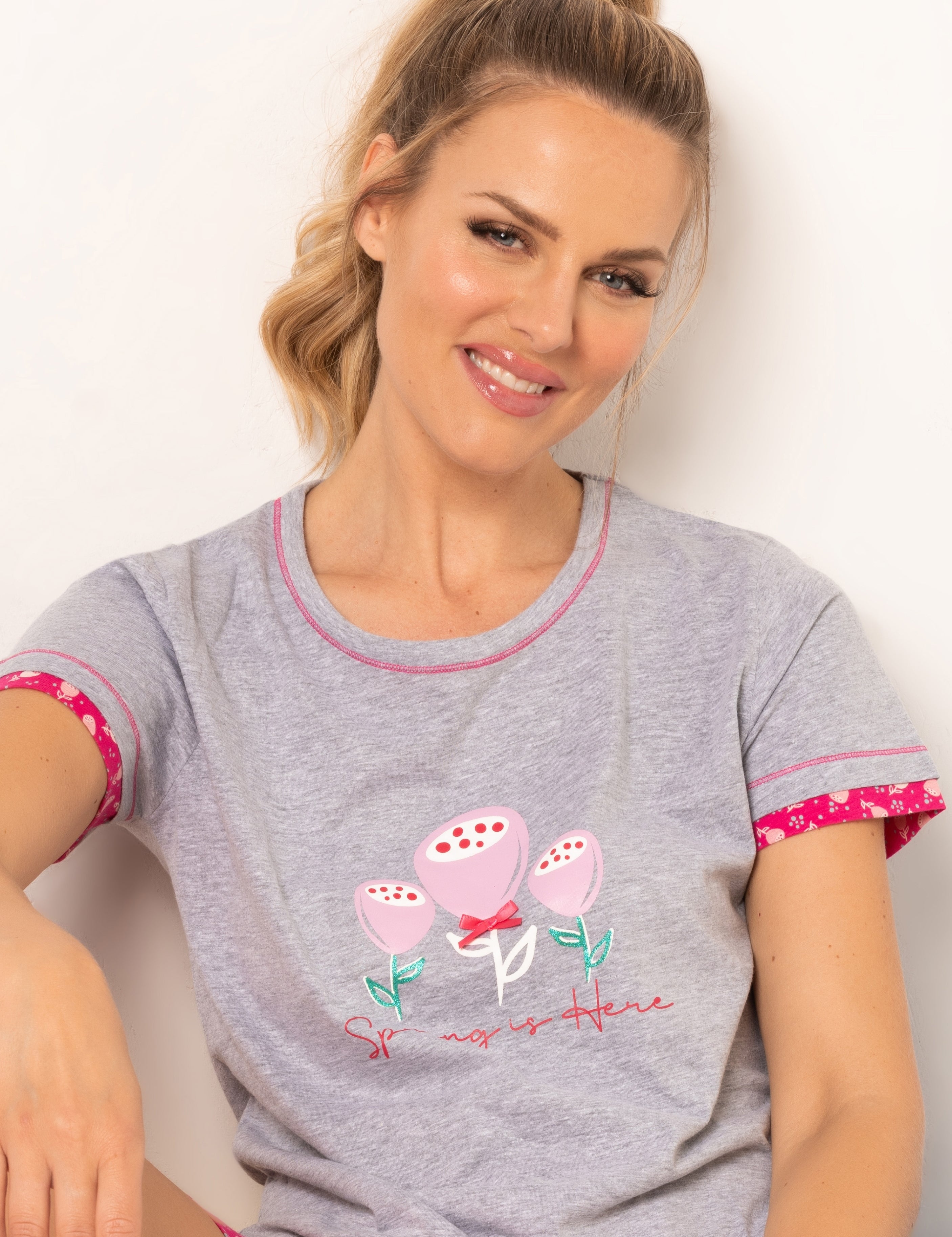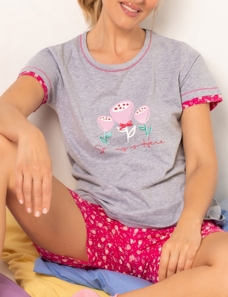 Pigiama Girocollo Manica Corta e Pantalone Corto in Cotone 100% - PN12