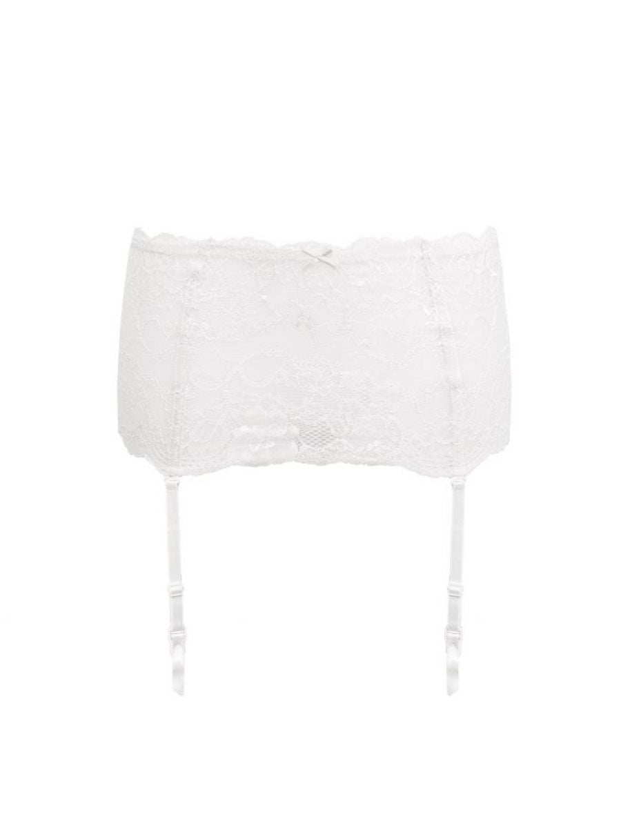 Reggicalze interamente realizzato in setoso pizzo con romantico motivo floreale e velvet removibili