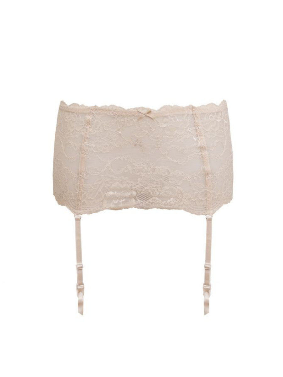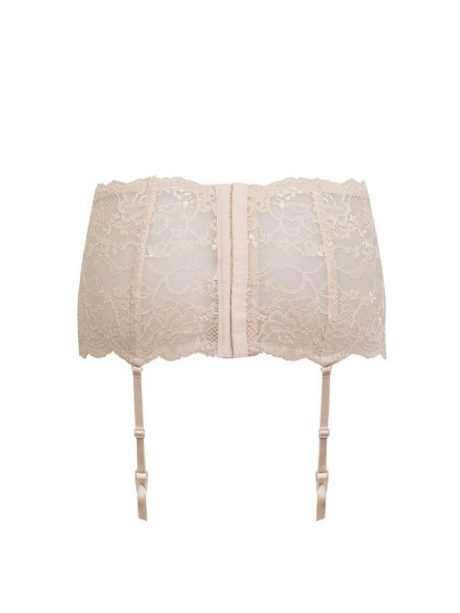 Reggicalze interamente realizzato in setoso pizzo con romantico motivo floreale e velvet removibili