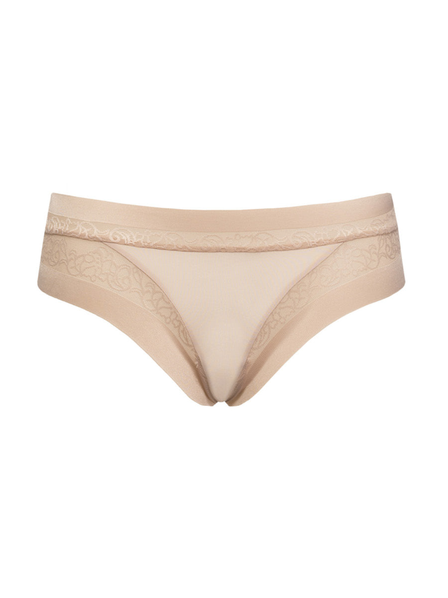 Slip in microfibra stretch matt a tinta unita con elegante lavorazione a motivo floreale in trasparenza sia sul fronte che sul retro. Il modello è caratterizzato dall'assenza di fastidiose ed inestetiche cuciture sui bordi.