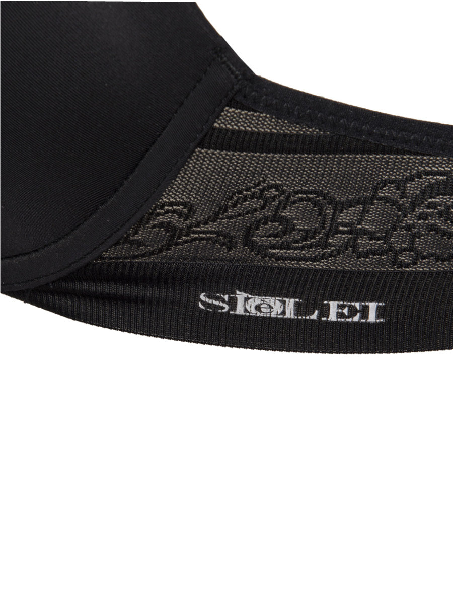 Reggiseno con ferretto e coppe imbottite realizzato in microfibra stretch matt a tinta unita e lavorazione a motivo floreale in trasparenza sul torace. Rifinito con logo Siélei su fianco.