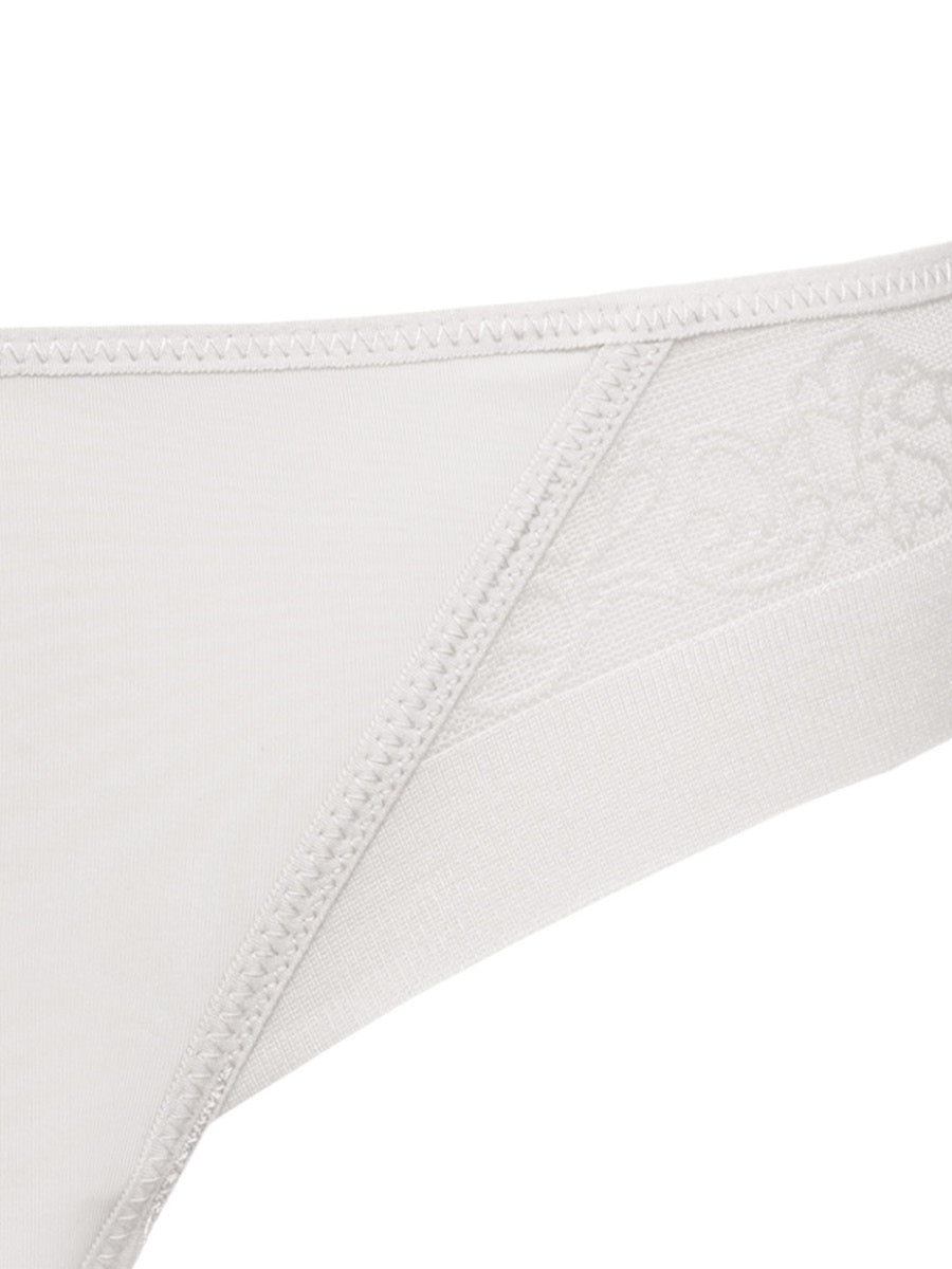 Brasiliana in microfibra stretch matt a tinta unita con elegante lavorazione a motivo floreale in trasparenza sia sul fronte che sul retro. Il modello è caratterizzato dall'assenza di fastidiose ed inestetiche cuciture sui bordi.
