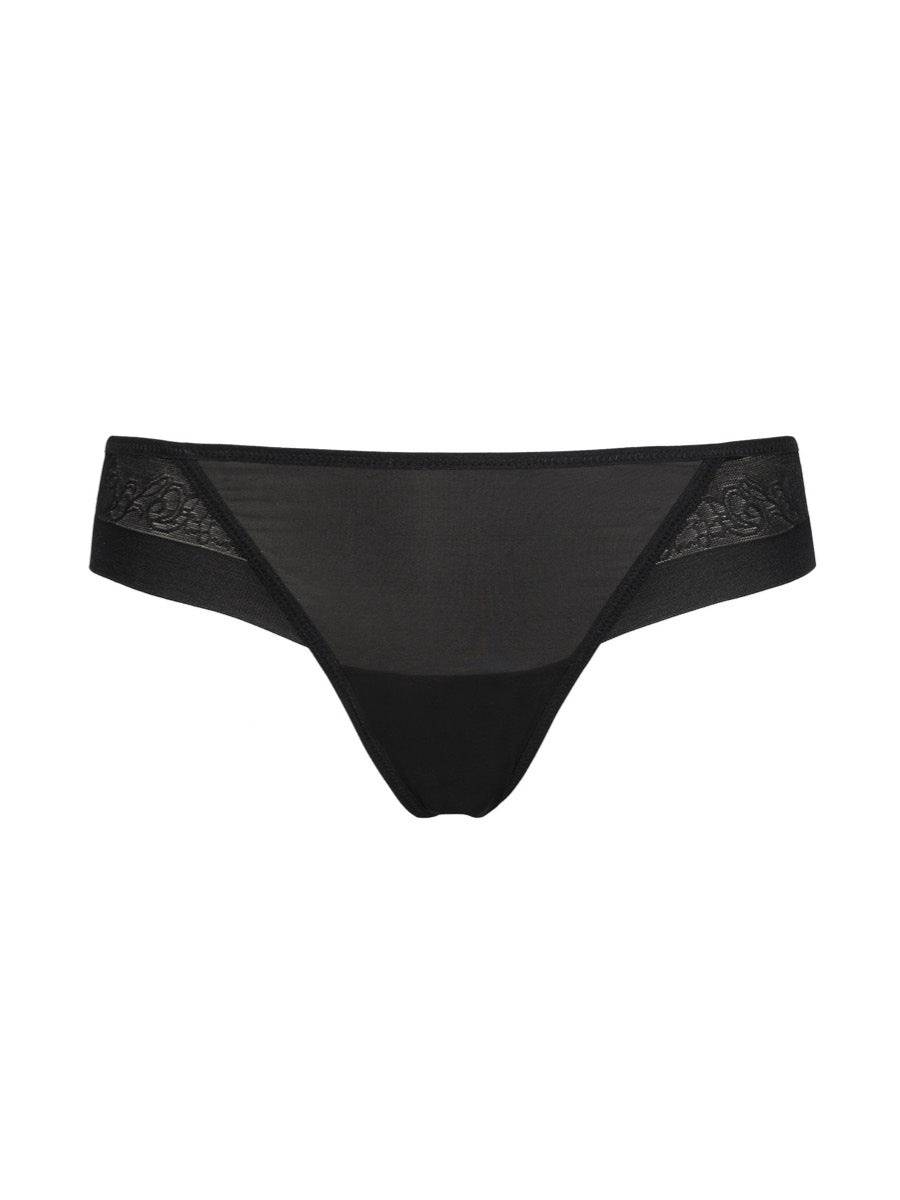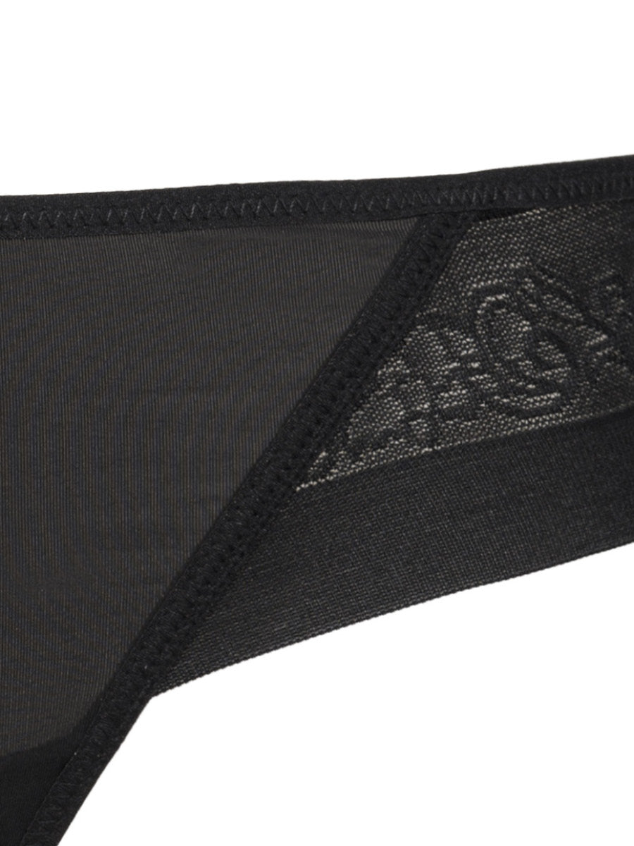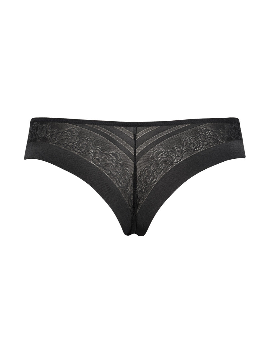Brasiliana in microfibra stretch matt a tinta unita con elegante lavorazione a motivo floreale in trasparenza sia sul fronte che sul retro. Il modello è caratterizzato dall'assenza di fastidiose ed inestetiche cuciture sui bordi.