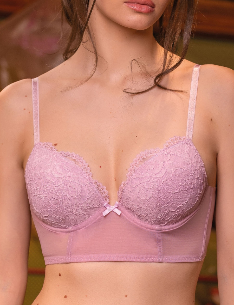 Bustier in pizzo floreale con coppe imbottite e ferretto - 7718