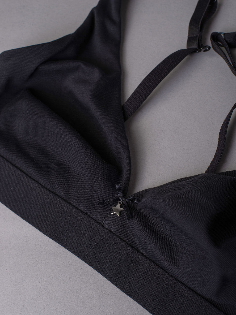 Reggiseno a triangolo senza imbottitura e senza ferretto, in cotone bio e con allacciatura speciale sulla schiena per un maggiore sostegno