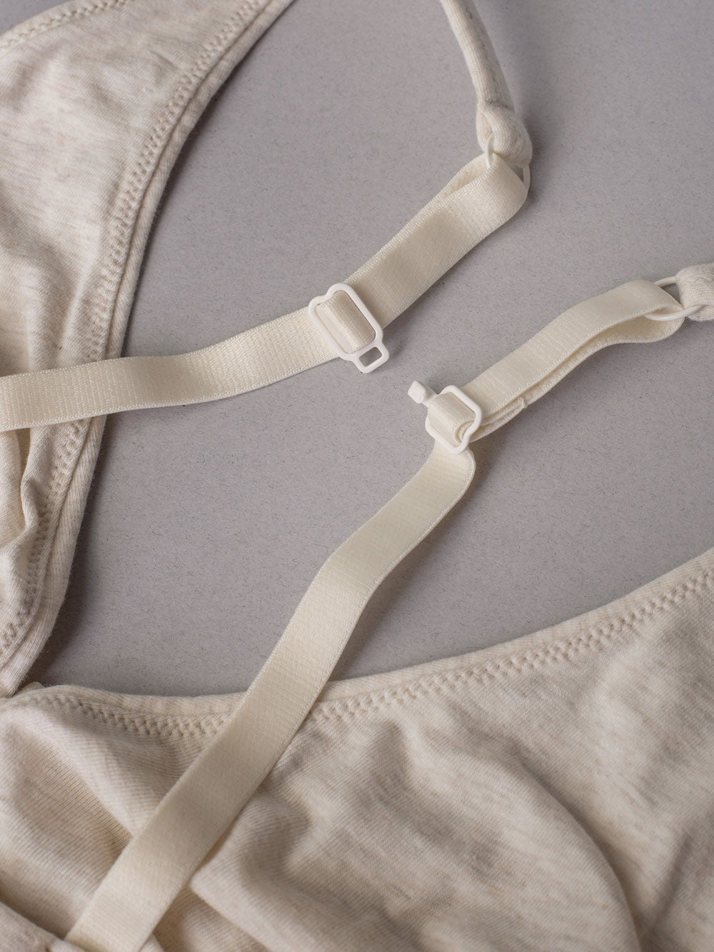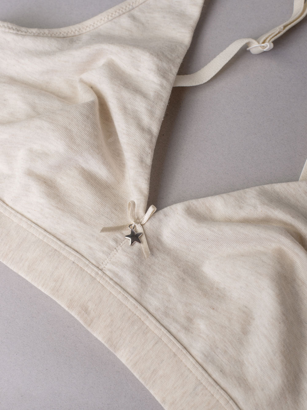 Reggiseno a triangolo senza imbottitura e senza ferretto, in cotone bio e con allacciatura speciale sulla schiena per un maggiore sostegno